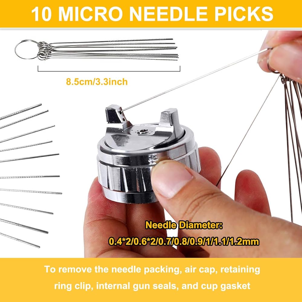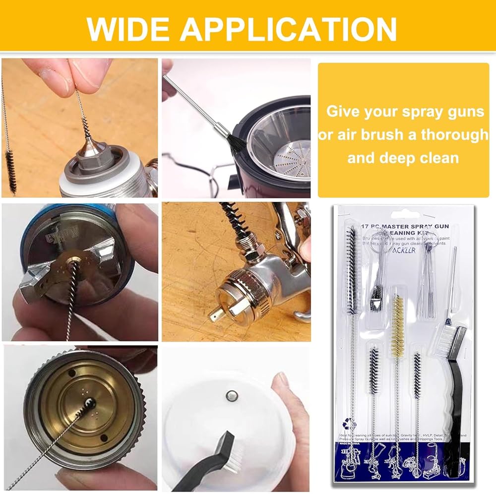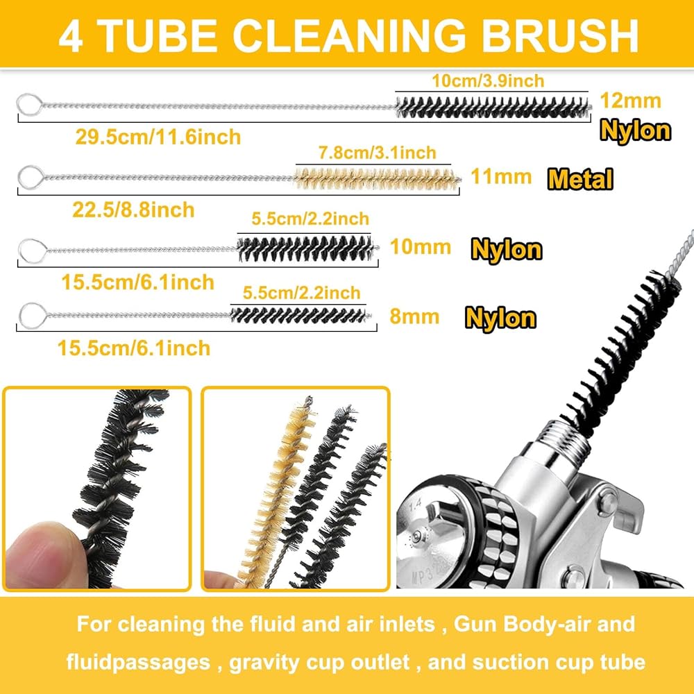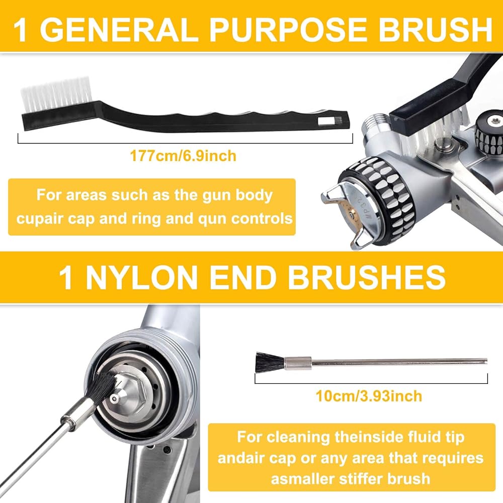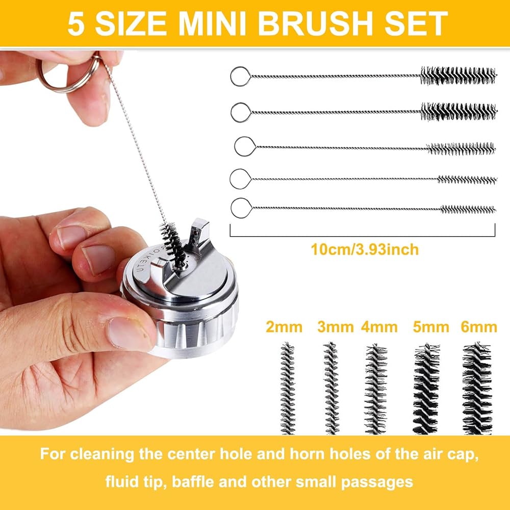You can choose brushes of varying sizes and shapes from the cleaning kit to access all the small passageways and crevices of the spray gun