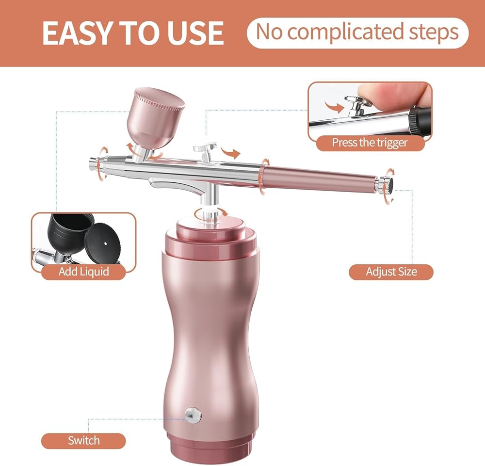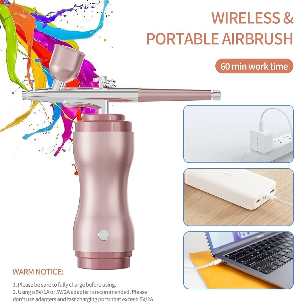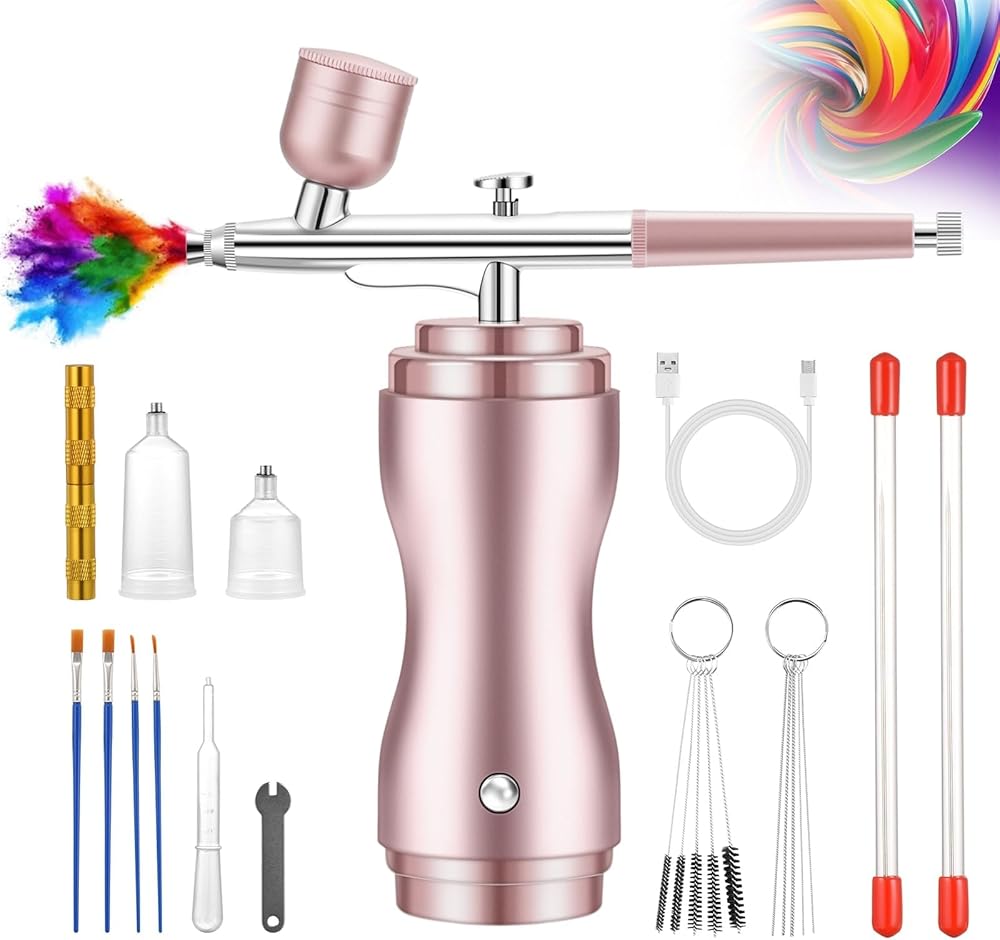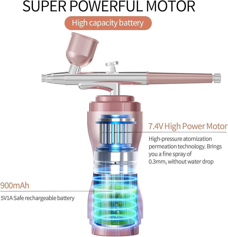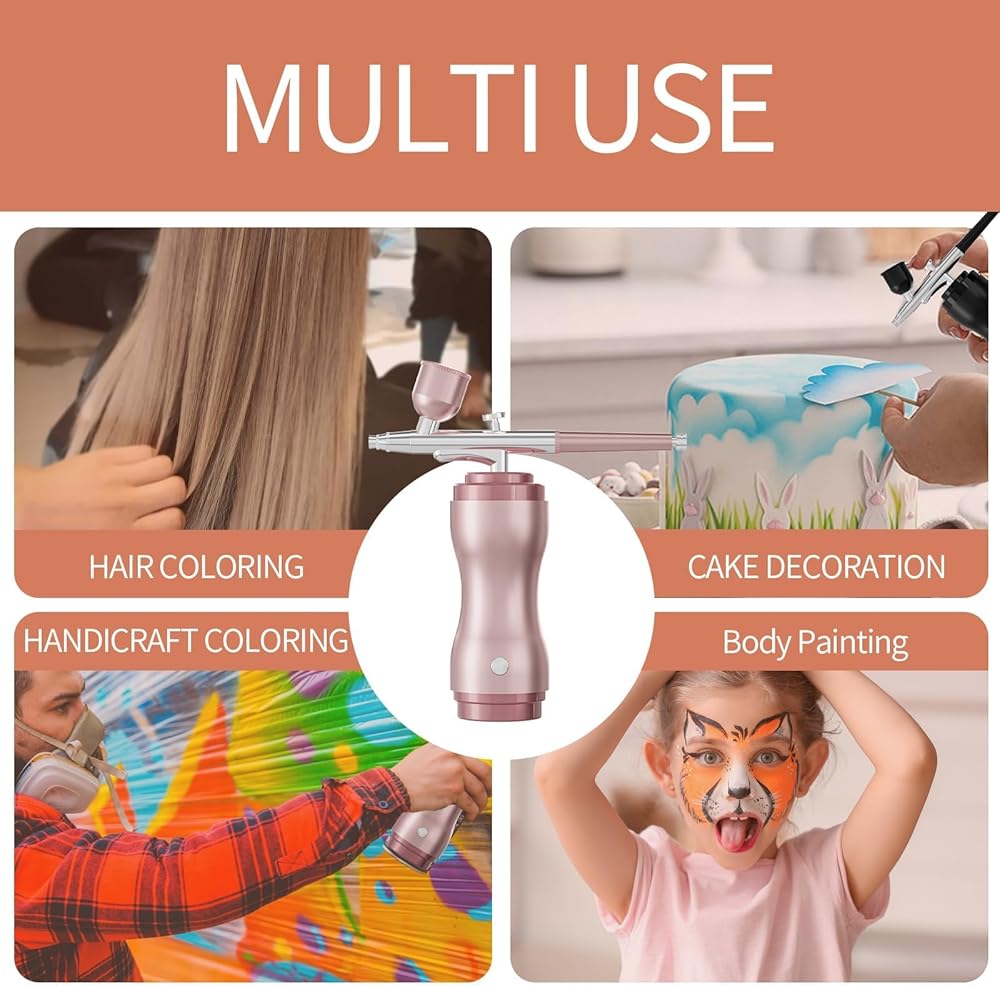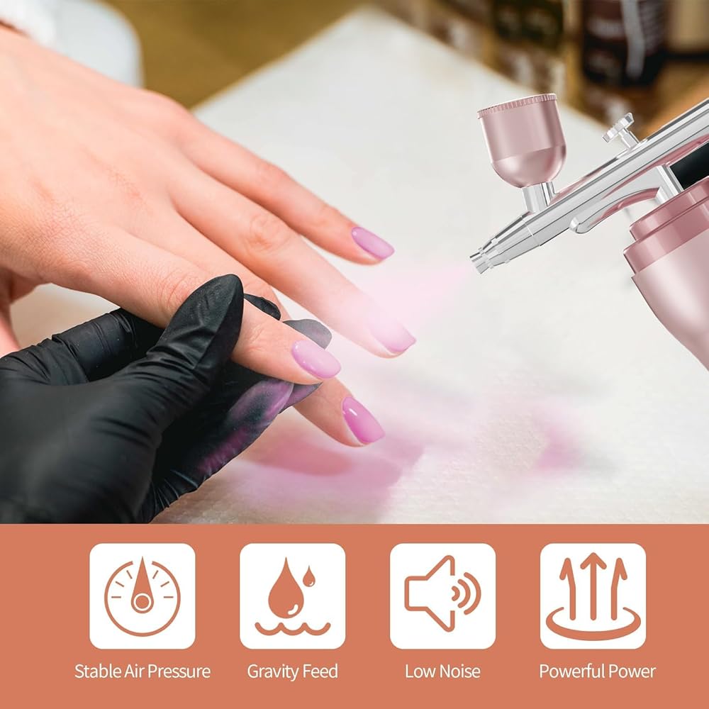 High Pressure Spray Flow: airbrush kits featuring 40PSI air pressure and airflow reaching 8-10L,resulting in a 60% performance boost. Stable performance for various applications such as art painting,model coloring,cake decoration,nail art,makeup,beauty