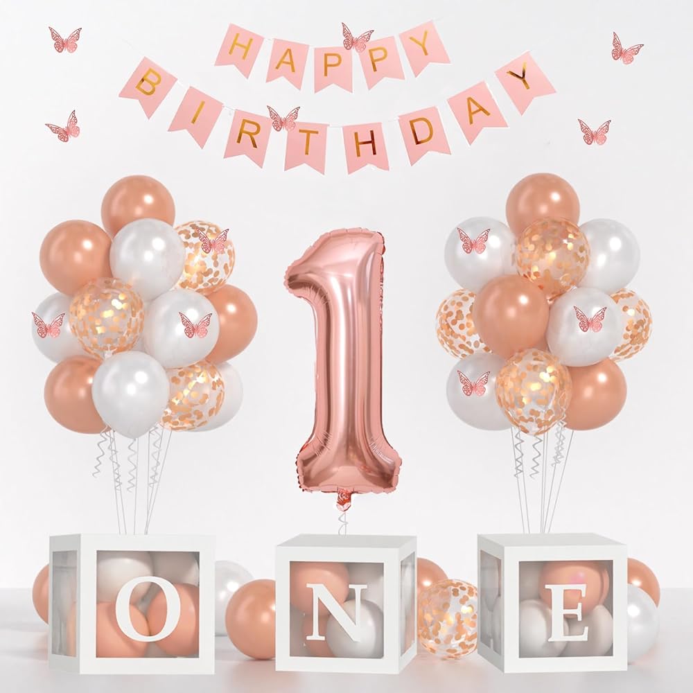 【عبوة قيمة】54 قطعة من ديكورات عيد الميلاد الأول للأولاد تتضمن: بالون أزرق 101.6 سم، لافتة عيد ميلاد سعيد زرقاء، 12 بالونة زرقاء فاتحة مقاس 12 بوصة، 12 قطعة بالون أزرق فاتح مقاس 12 بوصة، 12 قطعة بالونات بيضاء مقاس 12 بوصة، 8 قطع بالونات قصاصات زرقاء، 3 قطع صندوق بالونات مع "واحد" ملصقات وشريط لفة واحد.