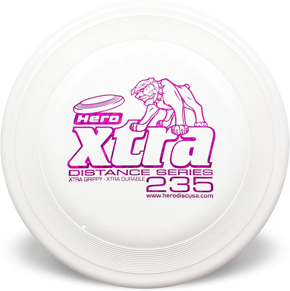 يحتوي طراز Xtra 235 Distance على بلاستيك لاصق يسمح لك بالإمساك به وتمزيقه، حتى عندما يكون القرص مغلفًا بلعاب الكلاب. منذ البداية، فاز هذا القرص بأحداث الرمي والالتقاط والمسافة أكثر من أي قرص آخر. القرص الموضح في الصورة هو للإشارة فقط. يظهر طيف الألوان لمقارنة اختيار الألوان. إخلاء المسؤولية: هذه الأقراص ليست مقاومة للثقب. يرجى شراء أقراص نموذجية "ممتازة" للكلاب التي تعاني من عضات أصعب. لن يتم استبدال الأقراص بالأضرار التي تلحق بالكلاب لأن هذه المنتجات ليست ألعابًا للمضغ.