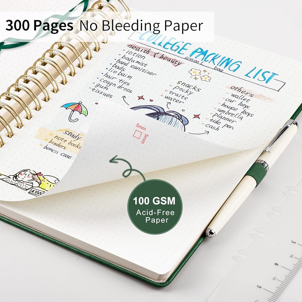 دفتر ملاحظات سميك 300 صفحة: يوفر دفتر الملاحظات المنقط EMSHOI 300 صفحة (150 ورقة) بحجم A4 (11.2 بوصة × 8.27 بوصة). تحتوي كل صفحة على نقاط مقاس 5 مم × 5 مم، مثالية للرسم أو الكتابة أو عمل المخططات، ودمج جميع الملاحظات في مكان واحد