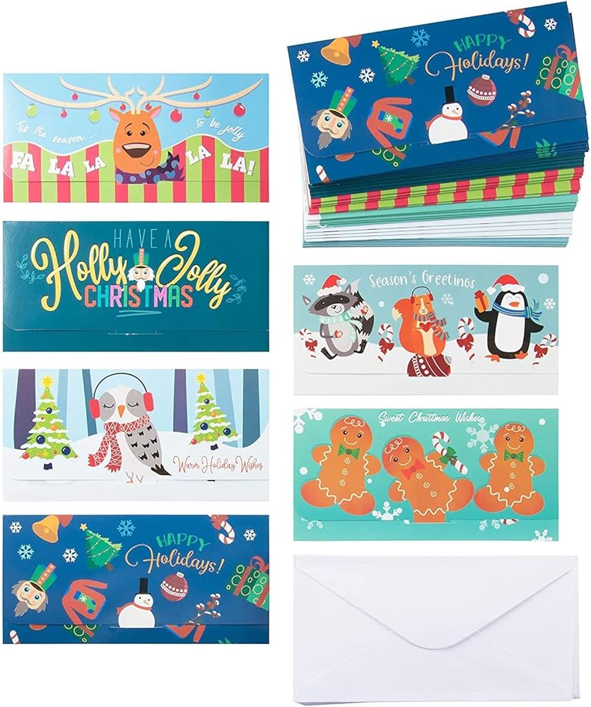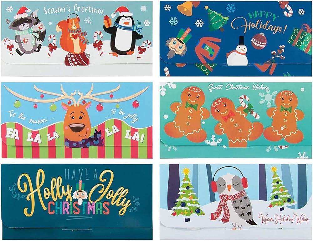 6 Assorted Designs: Find the perfect holiday card for everyone with this festive christmas money envelopes; includes 6 fun designs like reindeer, snowman, gingerbread man, and cute animals