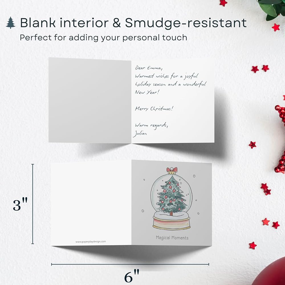• تصميمات الألوان المائية: مجموعتنا تضفي الحيوية على روح العطلة من خلال الرسوم التوضيحية الجميلة بالألوان المائية. تأتي كل بطاقة مع تحية مطبوعة مسبقًا بالداخل، تلتقط دفء وسحر الموسم