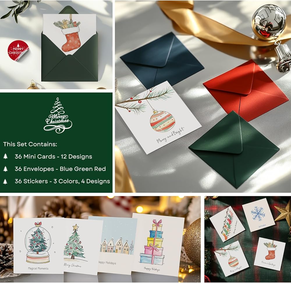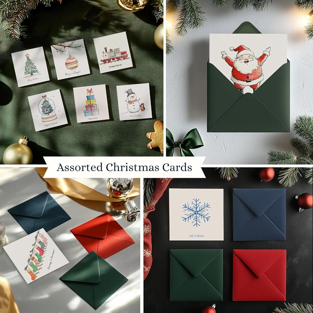 • هدية سحر عيد الميلاد: هل تبحث عن بطاقات عيد الميلاد المعبأة والمميزة؟ سواء كنت ترسل أمنيات دافئة لأحبائك أو تحيات احترافية لزملاء العمل، فإن بطاقات العطلات ذات الألوان المائية والمغلفة تضيف لمسة من السحر إلى كل رسالة عطلة