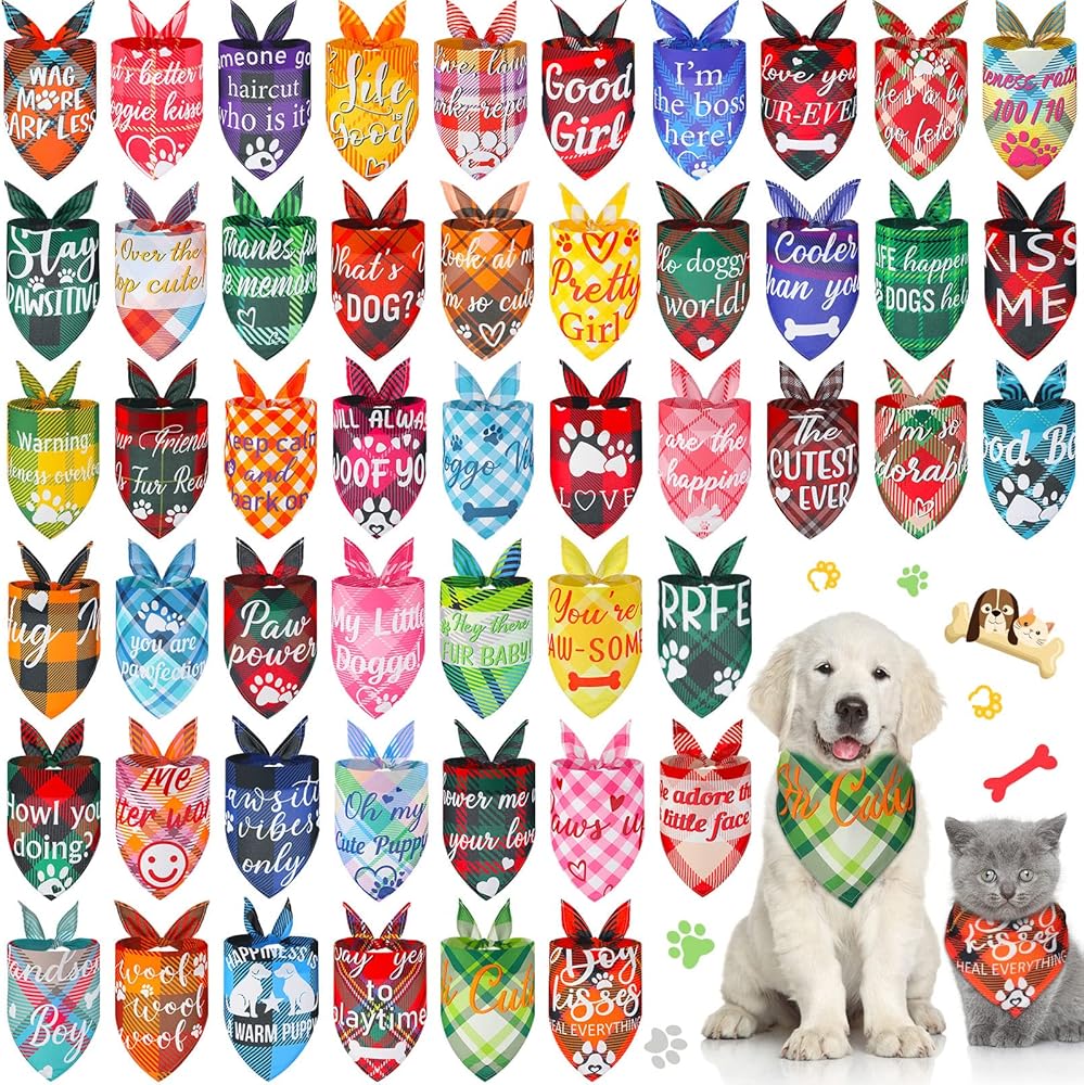 مجموعة مكونة من 50 قطعة: ستحصل على 50 قطعة من منديل الحيوانات الأليفة في 50 نمطًا متنوعًا وكميات كافية وأنماط غنية لتلبية احتياجاتك اليومية والاستبدال.