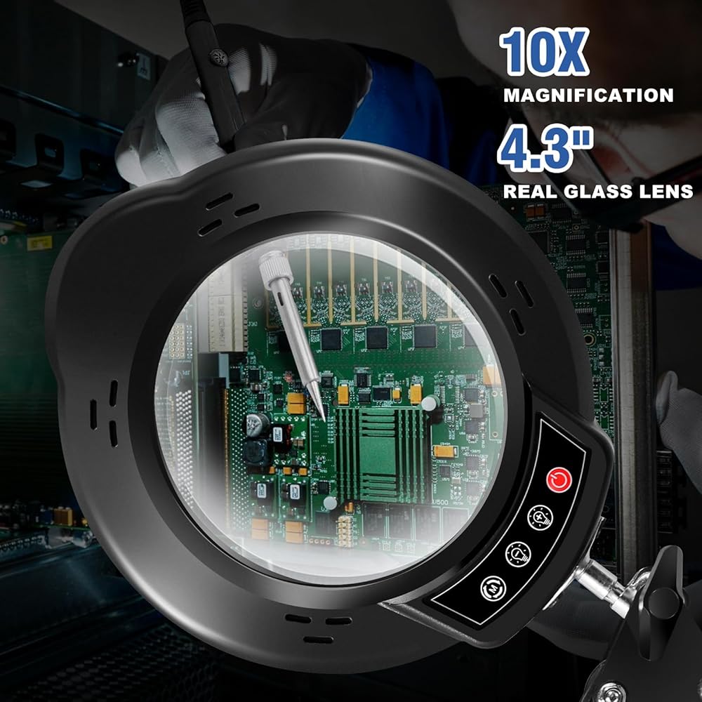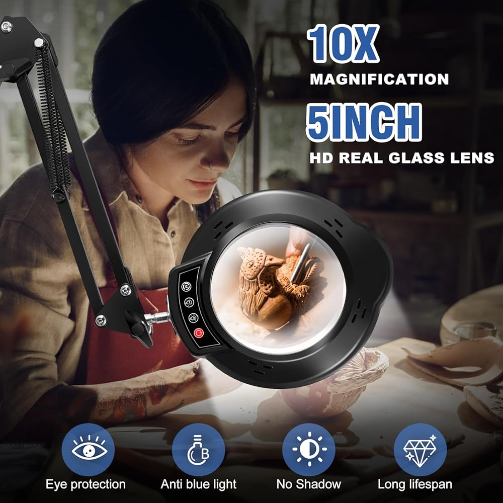 【تكبير 10X وعدسة مكبرة زجاجية حقيقية】- العدسة المكبرة ذات الضوء والمشبك مجهزة بعدسة زجاجية حقيقية. توفر رؤية واضحة وغير مشوهة. المصباح الزجاجي المكبر 10X مناسب بشكل خاص للحرف اليدوية، والقراءة، والرسم المصغر، والخياطة، والخياطة المتقاطعة، والرسم الماسي، والمهام الصغيرة، والمجوهرات، والهوايات، واللحام، وفن الأظافر، وتقنيات فن الأظافر، والخرز، وأربطة الطيران، والتطريز، والإصلاحات، ألغاز الصور المقطوعة، والرسم، والكتب، والتطريز، والحياكة، وما إلى ذلك.