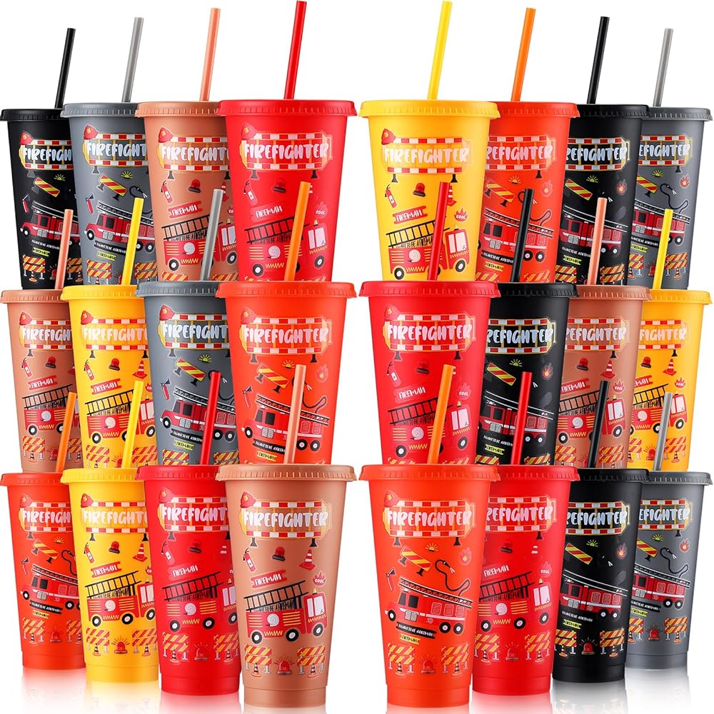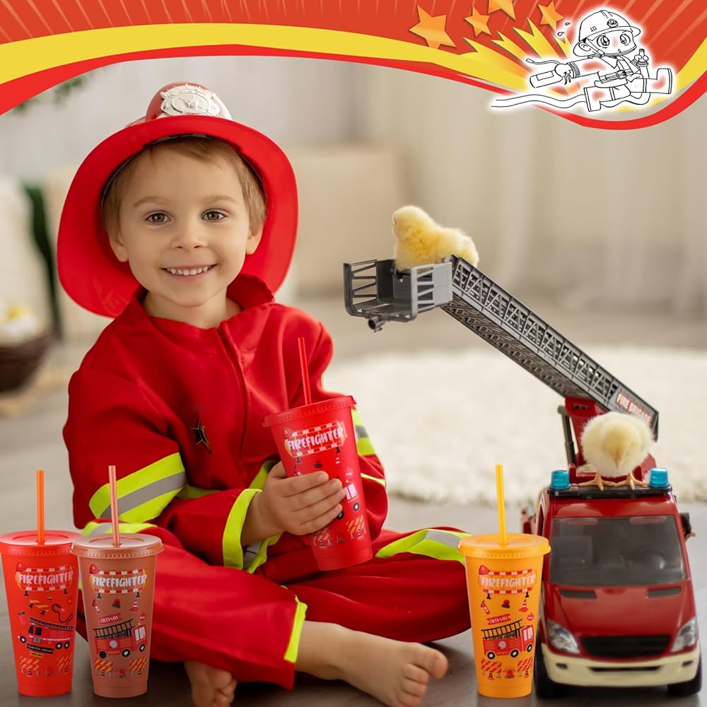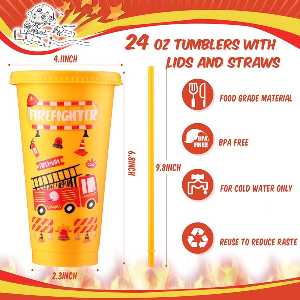 The fire truck plastic tumbler is designed with fire truck pattern, elegant and bright for you to use on fire truck theme party, birthday and others activities, children swill be satisfied.