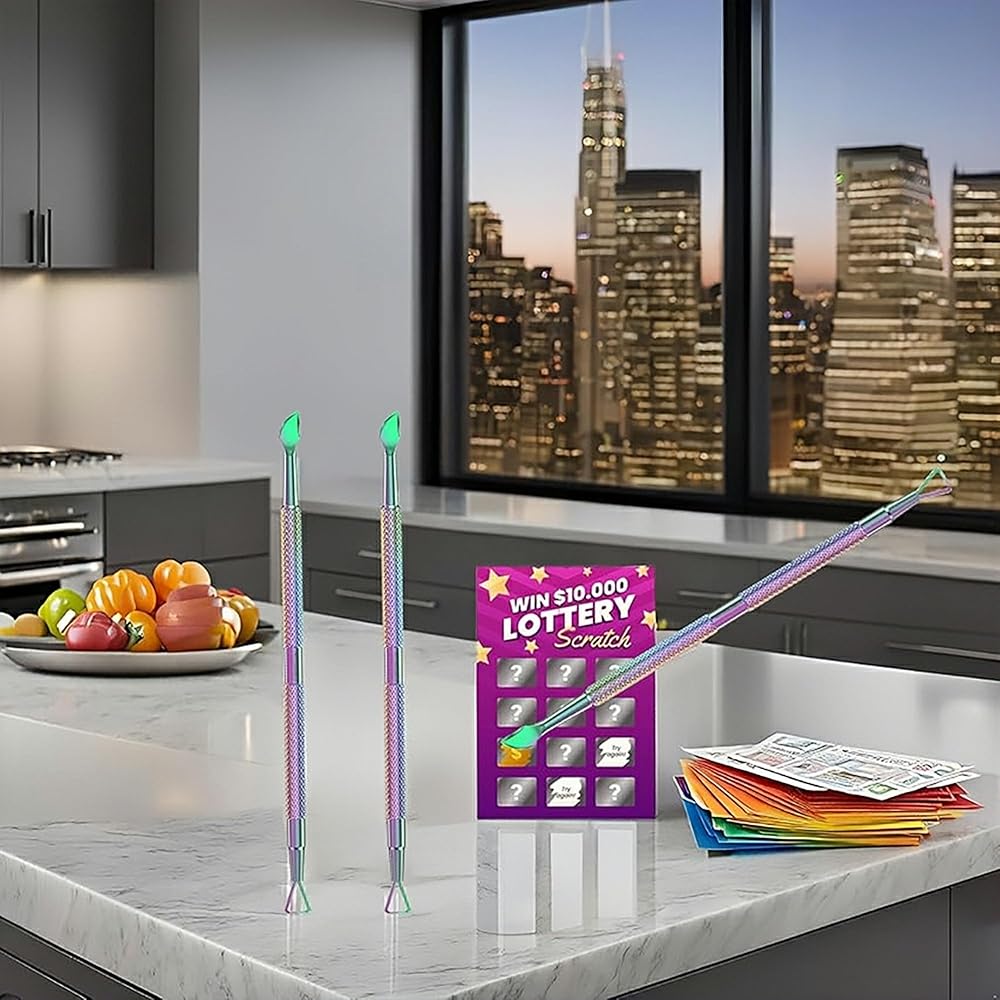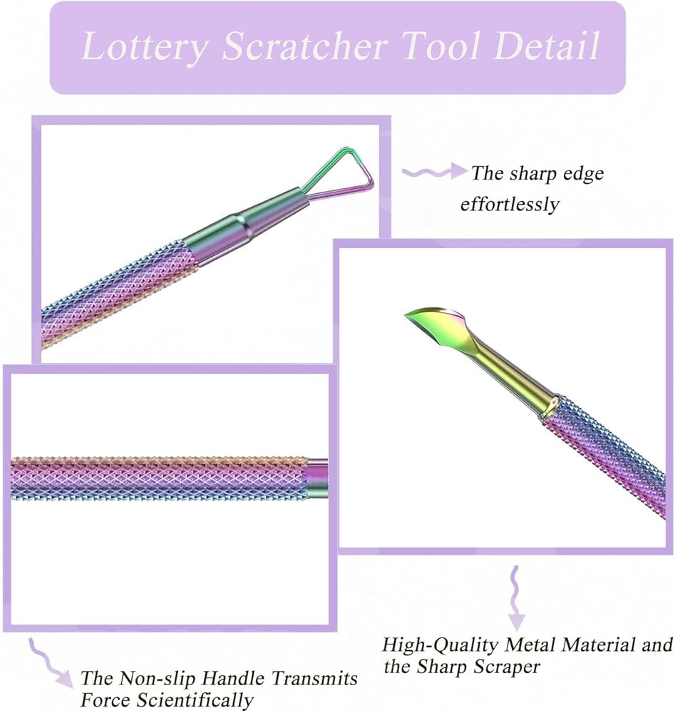 مادة معدنية: أداة كاشطة الملصقات مصنوعة من مواد عالية الجودة ولا تضر تذاكر اليانصيب الخاصة بك. ولا تتردد في تجربة تجربة خدش سلسة ومثيرة