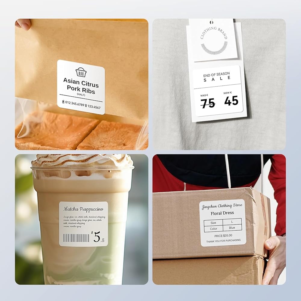 باستخدام تقنية الطباعة بالنقل الحراري، الطباعة بدون حبر أو شريط. المواد الأكثر تكلفة توفر جودة أفضل، يتميز ورق الملصق بقدرة التصاق قوية، وطباعة واضحة، ولا يبهت اللون، ومقاوم للماء، ومقاوم للزيوت، ومقاوم للتمزق، وغير سام، وغير ضار، وقابل للتحلل.