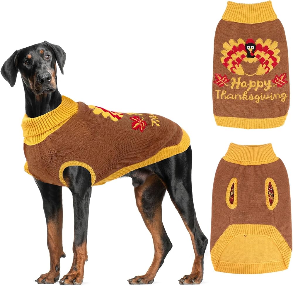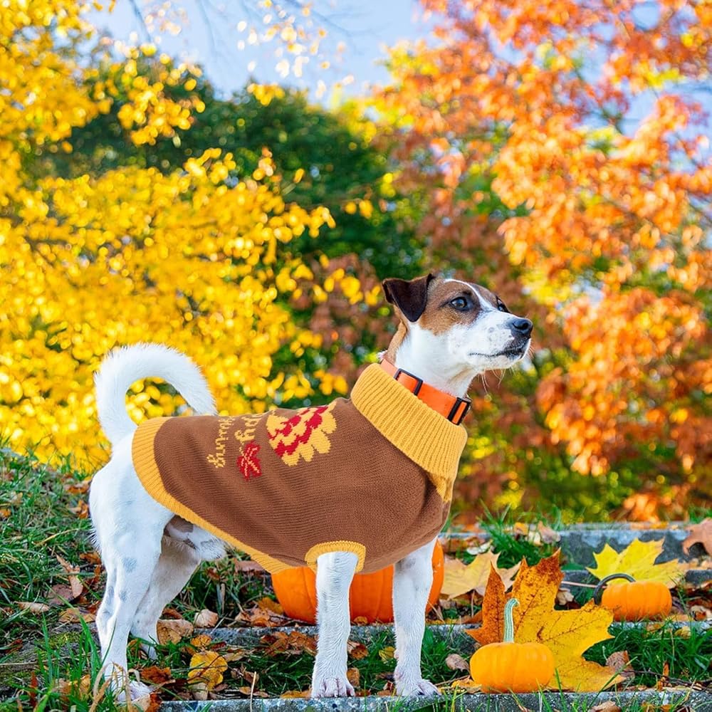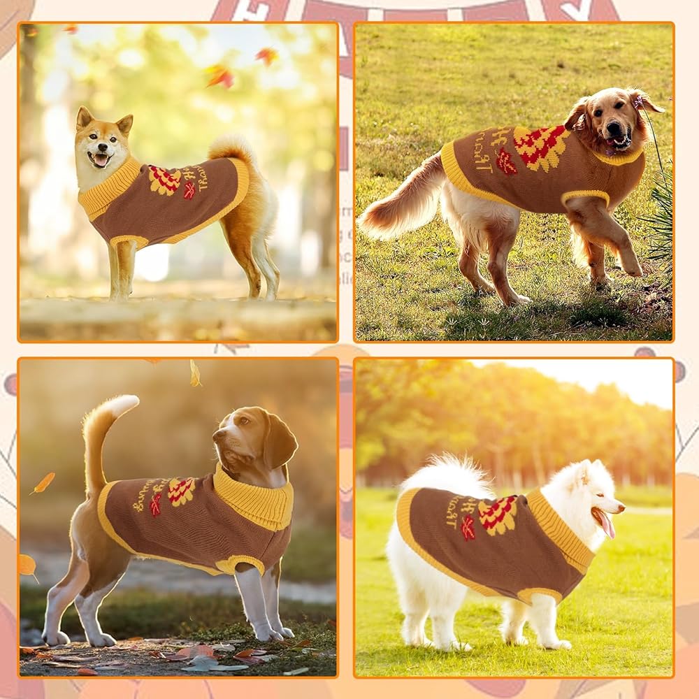 • 🦃 التصميم ----- سترات الكلاب ذات فتحة المقود هي طراز محبوك كلاسيكي. نمط تركيا المرح مع الخلفية البنية يناسب موضوع عيد الشكر، وهو جميل ورائع. بالإضافة إلى رسائل عيد الشكر الجميلة "عيد الشكر السعيد"، والتي ستجعل حيواناتك الأليفة تبدو أكثر جاذبية بين الناس في عيد الشكر.