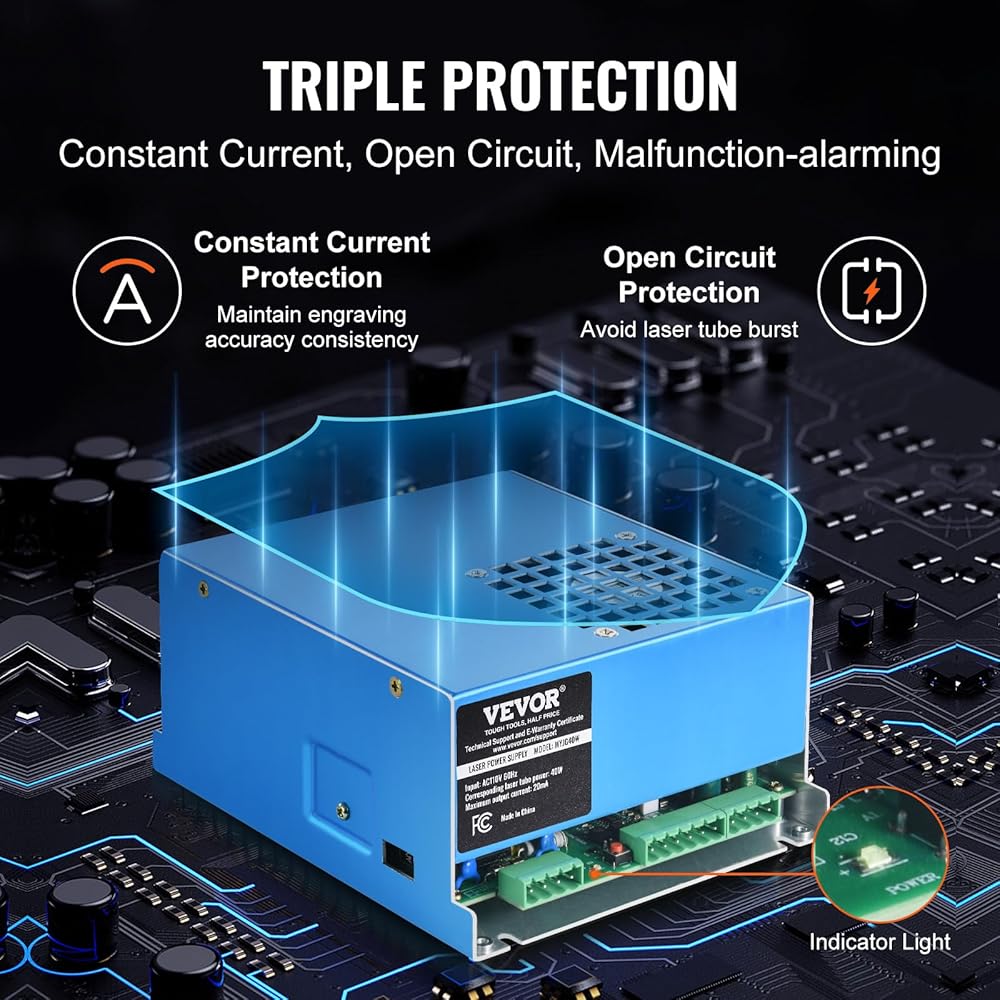 إن مصدر طاقة الليزر المصمم خصيصًا لآلة النقش بالليزر متوافق تمامًا مع العلامات التجارية المختلفة لأنابيب الليزر، ويتم تمييز المنافذ بوضوح بالملصقات المقابلة، ويمكنك إكمال الاتصال بسهولة وفقًا للإرشادات.