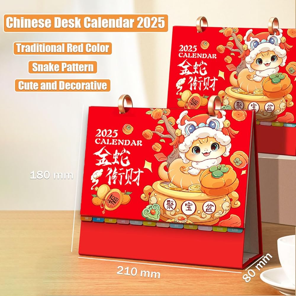 【سهلة التخزين والوصول】: تقويم مخطط الثعبان لعام 2025 لسطح المكتب والتقويم القمري الصيني، وقاعدة قابلة للطي لسهولة التخزين. مزود بحلقة إغلاق قابلة للفصل، يسهل الوصول إليها باستخدام حشوات قابلة للإزالة، هذا التقويم يسمح بقلب الصفحات بسهولة دون التعرض لخطر التمزق.