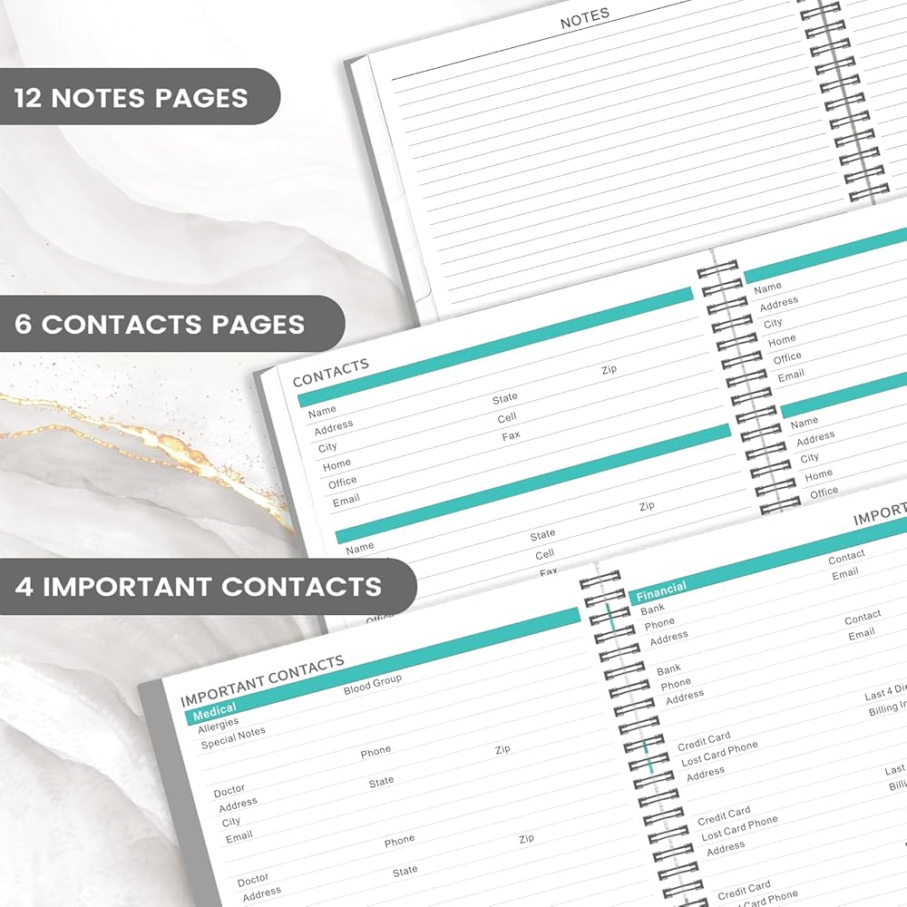 🌈 عملي وأنيق - يسمح الربط المزدوج بالطي بزاوية 360 درجة. نظرة عامة سنوية لعام 2025/جهات اتصال مهمة/8 صفحات اتصال/4 صفحات كلمة المرور/12 صفحة ملاحظات/معلومات شخصية.