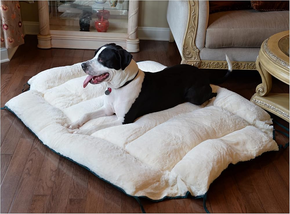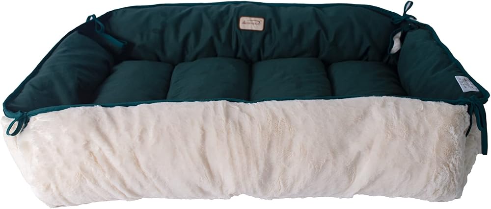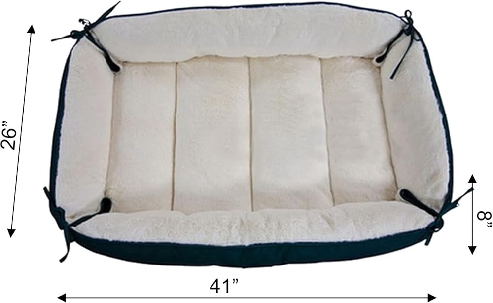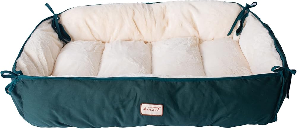 Armarkat's Model D04HML/MB-L easily turns from a pet bed to a mat thanks to versatile side strings. This large dog bed and mat is offered in laurel green and ivory. It is made of heavy-duty canvas and silky soft plush. The dog bed is filled with extra-thick, 100-percent poly fill for maximum canine comfort. Model D04HML/MB-L is machine washable.Six months manufacturer's warranty against defects. Dimensions: Interior: 35" x 22" Exterior: 41"(L) x 26"(W) x 8"(H) Flat Dimensions:49" x 37"