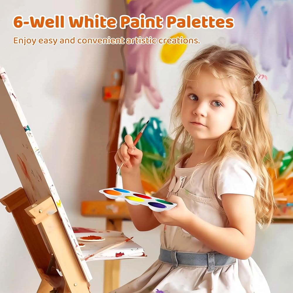 【بلاستيك قوي وناعم】مصنوعة من مادة بلاستيكية البولي بروبيلين عالية الجودة، لوحات الألوان المائية الخاصة بنا قوية وسميكة، مما يمنع الكسر والتشقق. يوفر السطح والحواف الناعمة لمسة مريحة وآمنة دون خدوش. وفي الوقت نفسه، فإن السطح الأملس يجعل التنظيف سهلاً، مما يسمح بالاستخدام المتكرر.