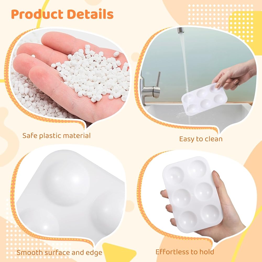 【6 آبار مريحة وتصميم أبيض ساطع】تتميز كل صينية رسم بـ 6 آبار، يبلغ قطر كل منها 1.26 سم، مما يسمح لك بفصل ألوان الطلاء المختلفة بسهولة. يعزز التصميم الأبيض الساطع وضوح ألوان الطلاء، مما يجعل من السهل مزج وتطبيق إبداعاتك الفنية.