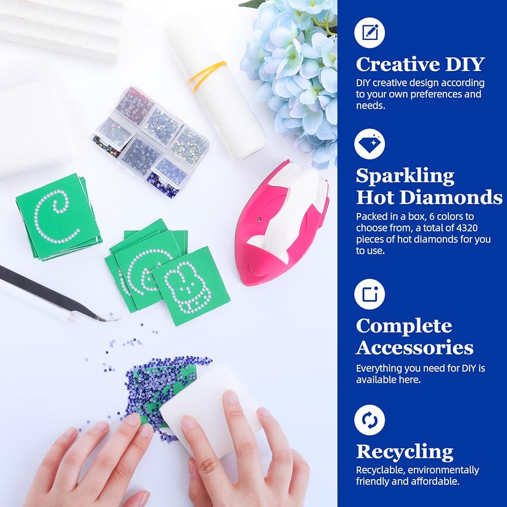 هدية رائعة لعشاق الأعمال اليدوية: أداة ساخنة بالأحجار الكريمة والكريستال، يمكنك تزيين منتج عادي بشكل لامع بسهولة في بضع دقائق. اختيار مثالي لأعياد الميلاد والكريسماس وعيد الشكر وهدايا الهالوين للعائلات والأصدقاء والحبيب وما إلى ذلك