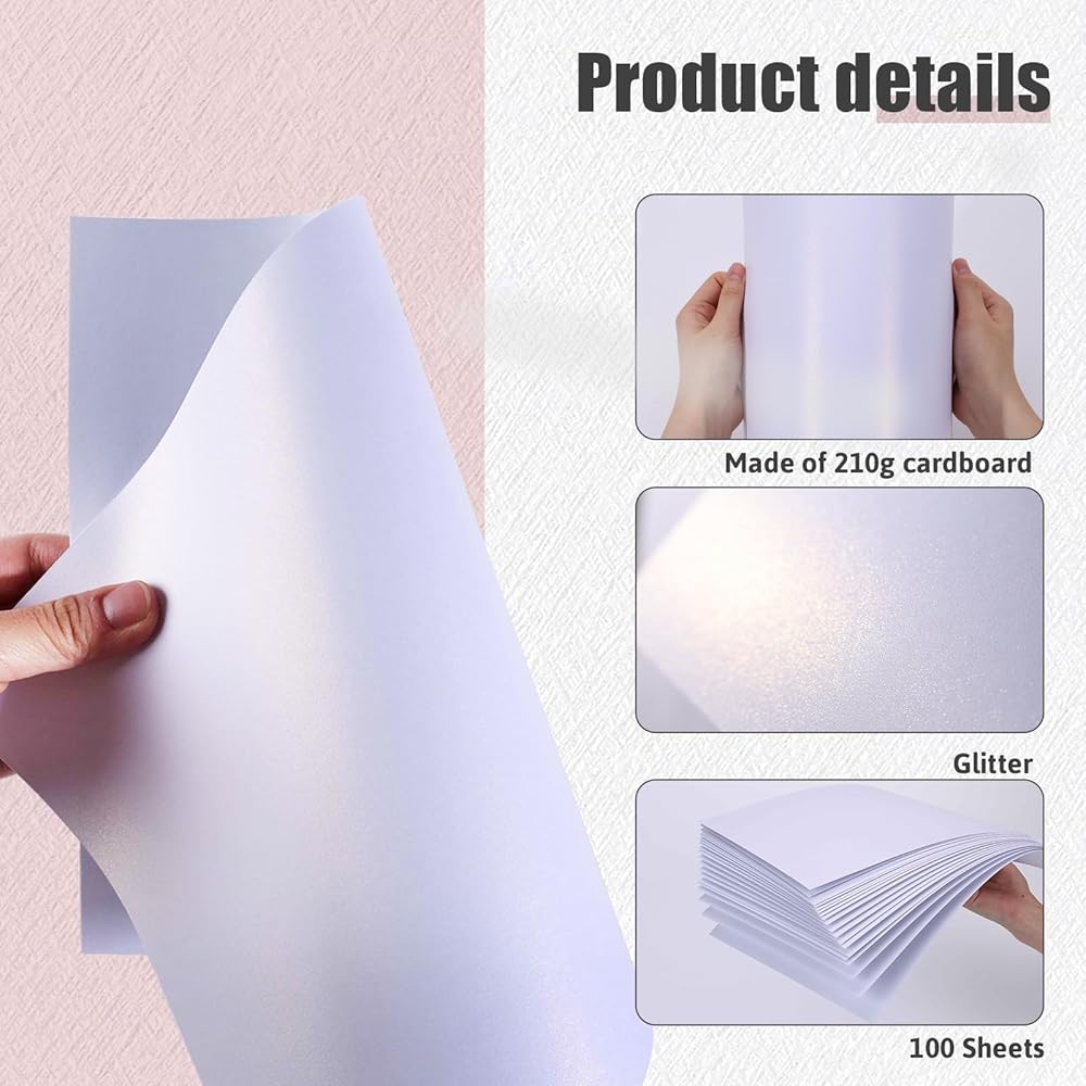 وفرة من الورق اللامع - تتضمن هذه العبوة كمية كبيرة من 100 ورقة من ورق البطاقات اللامع المعدني الأبيض عالي الجودة. تتوافق كل ورقة مع الحجم القياسي A4 (11.7 × 8.3 بوصة) وتتميز بوزن يبلغ 210 جرامًا للمتر المربع، مما يجعلها مناسبة تمامًا بشكل استثنائي لمهام مثل الطي واللكم والقطع الدقيق باستخدام أدوات مثل قواطع القوالب واللكمات.