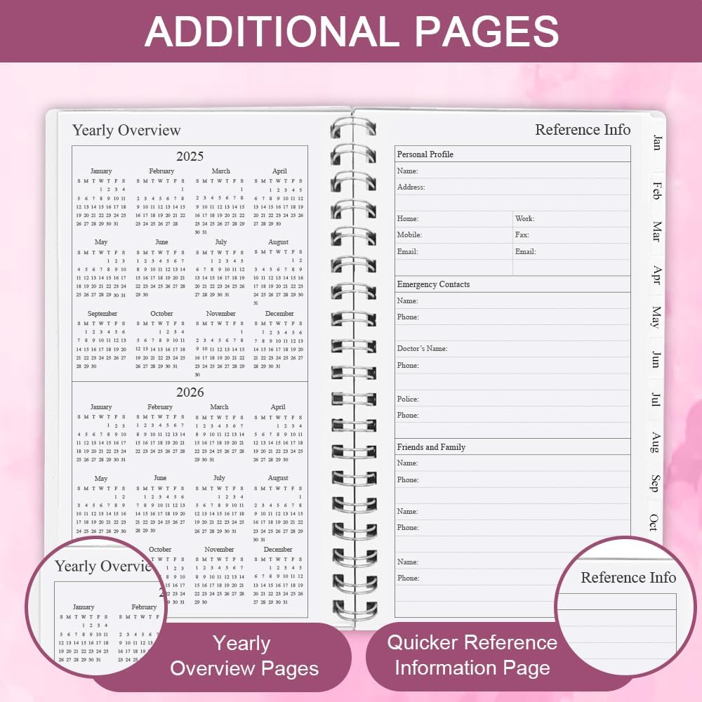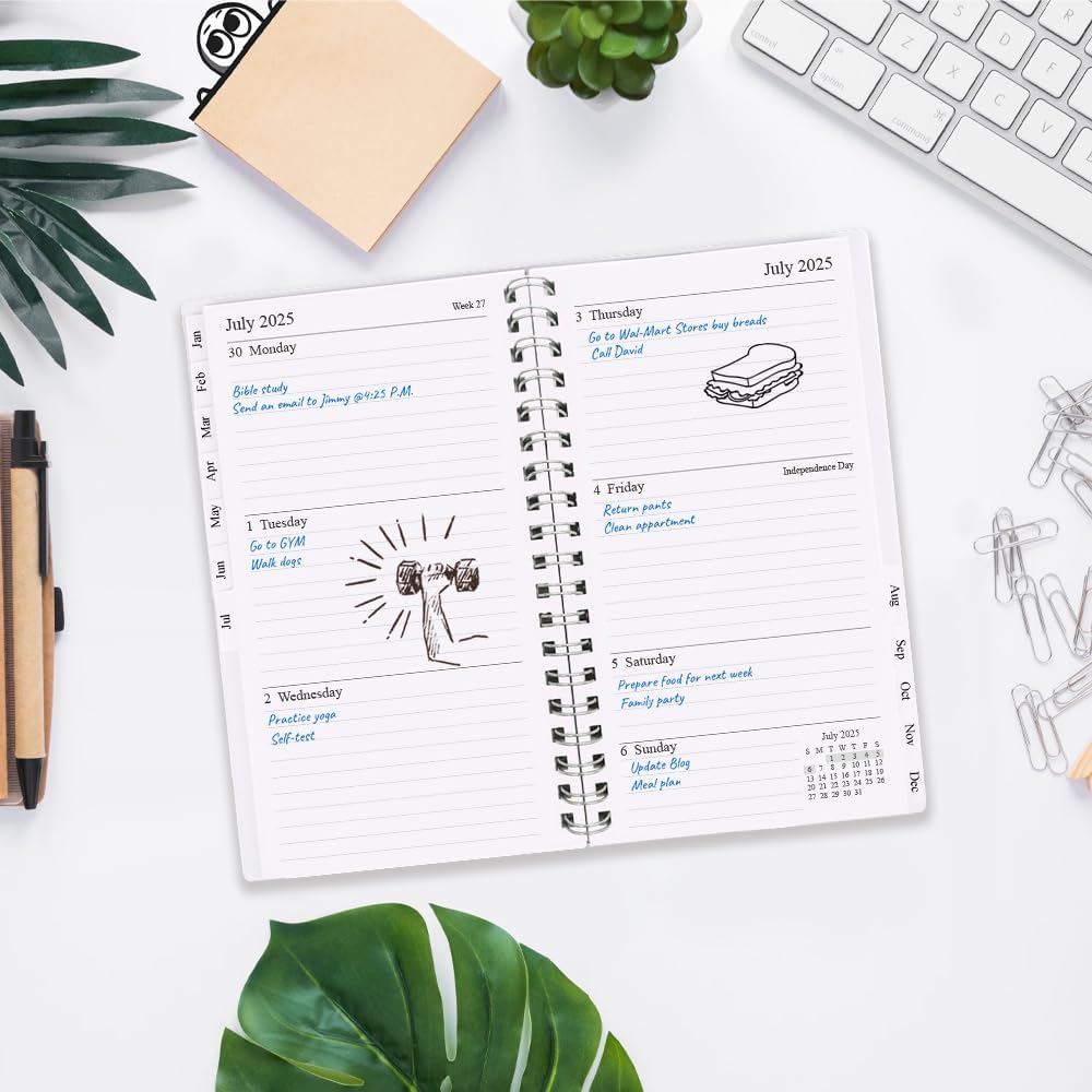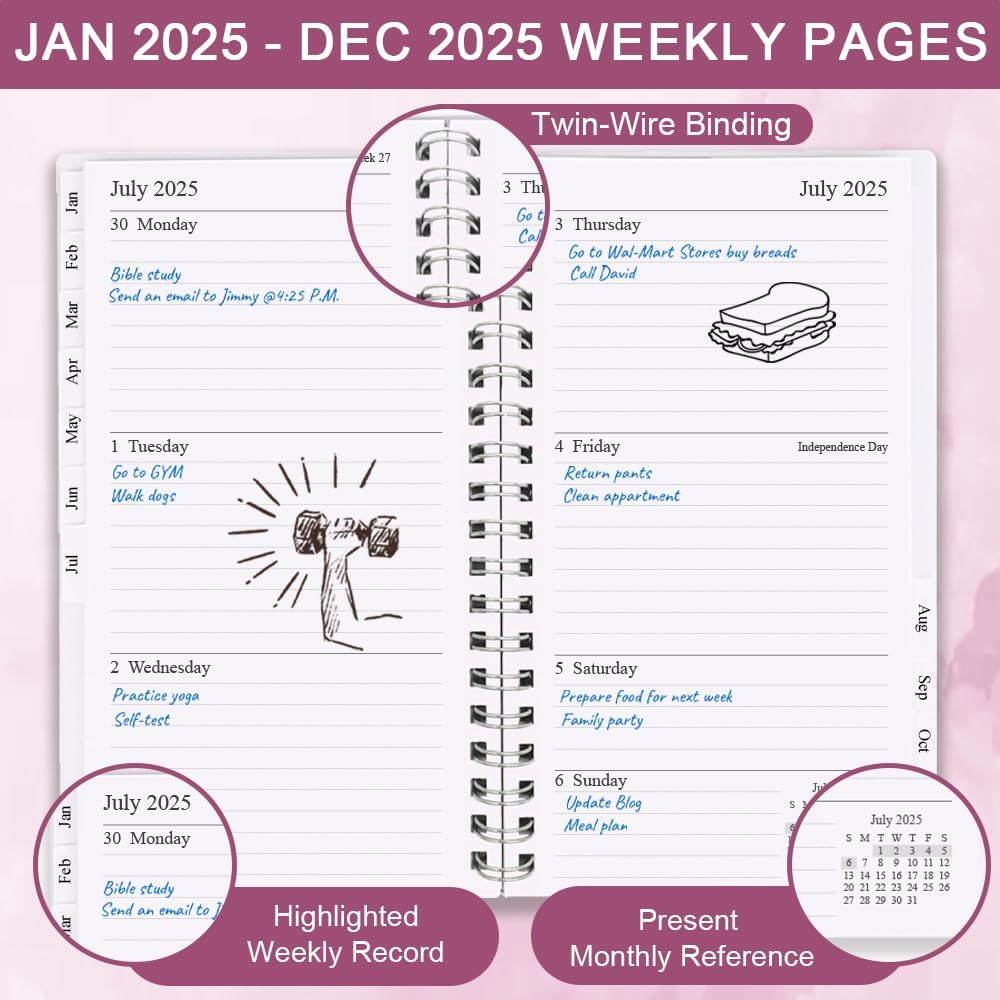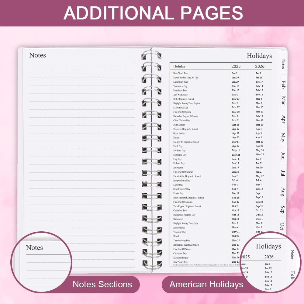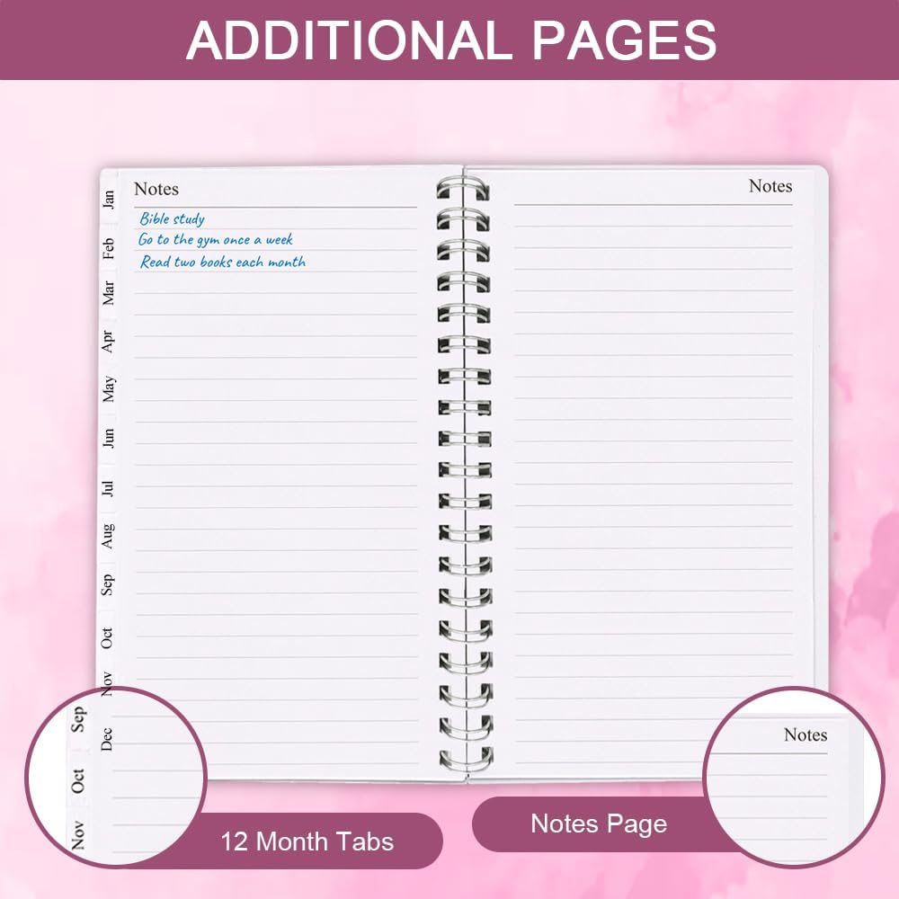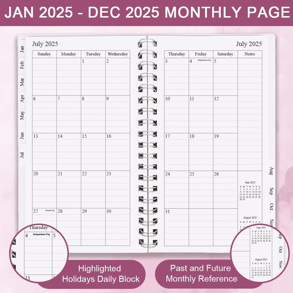 This 2025 weekly & monthly planner(January 2025 - December 2025) measuring 3.75" x 6.75", planner 2025 is a simple and elegant planner which could keep you organized everywhere you go. Simple page designs and plenty of room for all of your important information. 12 Month planner contains: yearly overview (calendar of 2025-2026) holidays 2 contact pages 12 month calendar sections 53 week sections 14 notes pages(lined) Each monthly spread contains an overview of the month and a notes section. 12 month calendar, 2 pages per month. Plenty of room for notes and details. Each monthly calendar is followed by 5 weekly pages, 2 pages per week. Weekly spread include ample space to write down your daily schedule, appointments, activities, week's focus, to do list/goal and keep track of all days clearly with the weekly view. This distinctive monthly & weekly planner features high quality 100gsm white paper for easy writing and reducing ink leakage, erase fraying and shade issues, providing clean writing space for your appointments, to-dos and reminders. This monthly and weekly planner responds well to fountain pen, gel pen, roller pen, ballpoint pen, highlighter, pencil and etc. Monthly calendar tabs allow easy access to each month's plans. Sturdy and flexible covers to protect the inner pages well, thick paper for smooth writing, strong twin-wire binding, sturdy plastic pocket to store loose items, like tickets, cards, papers etc, all these details demonstrate high quality. This personal organizer features flexible structures that allow you to keep track of goals, tasks, appointments, project, works, habbits etc. Perfect for planner, organizer, academic agenda or note pad for school, work or home or makes a great gift. Plan, create and schedule your daily life with this gorgeous monthly & weekly planner now.