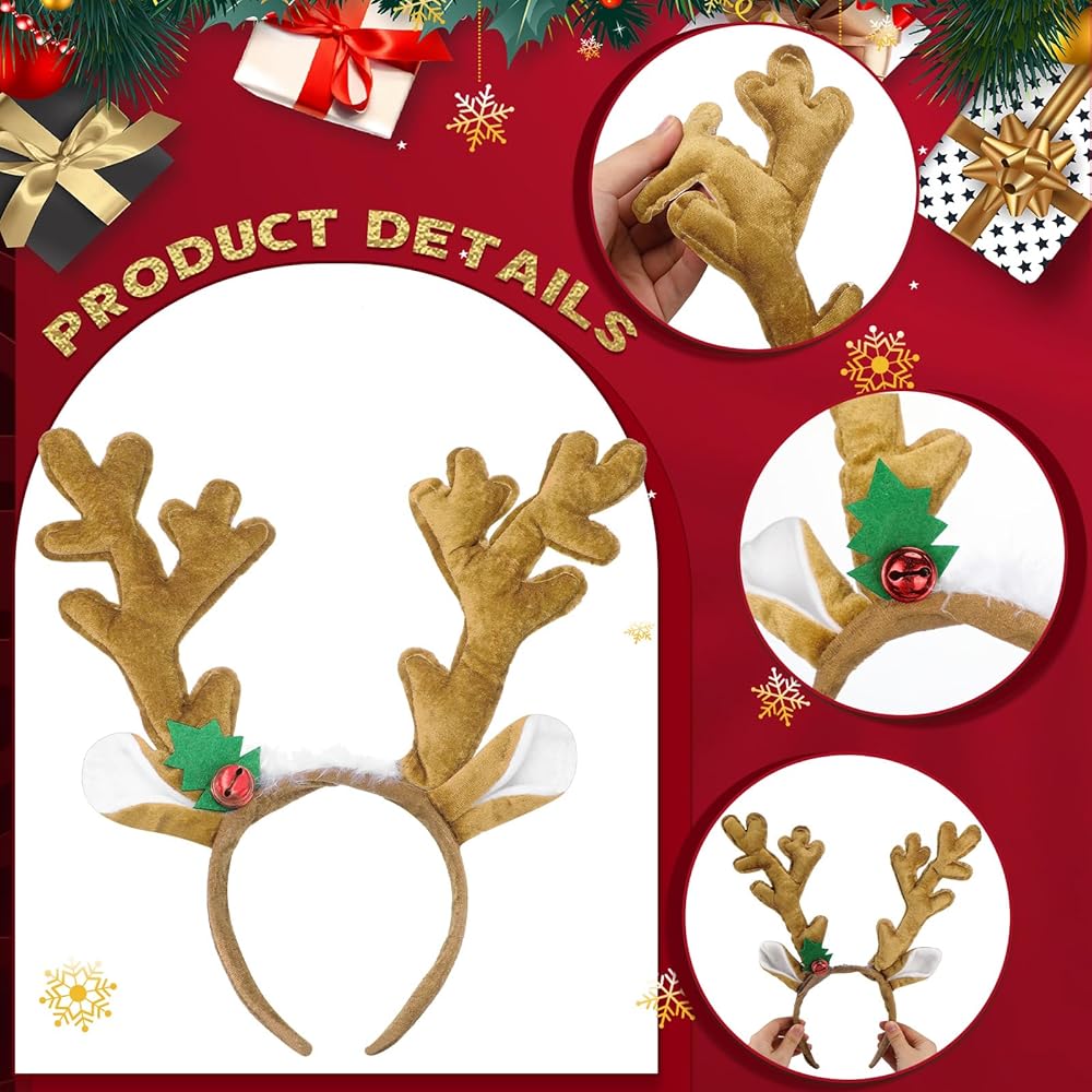 Reindeer Antlers design: the reindeer antler headband is in brownish yellow and coffee colors and decorated with bells and leaves; Also has some white plush in the middle; Their eye catching reindeer antlers design adds more fun to your Christmas celebrations, making them an ultimate holiday accessory