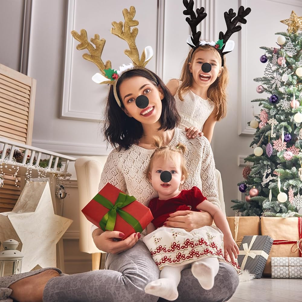 Soft and Durable Material: the Christmas reindeer headband is made of cloth and iron wire, while the reindeer noses are crafted from sponge; These materials are not only soft for a comfortable wear, but also sturdy and reliable for prolonged usage; Whether you're jumping or jiving, these headbands and nose props are designed to stay in place