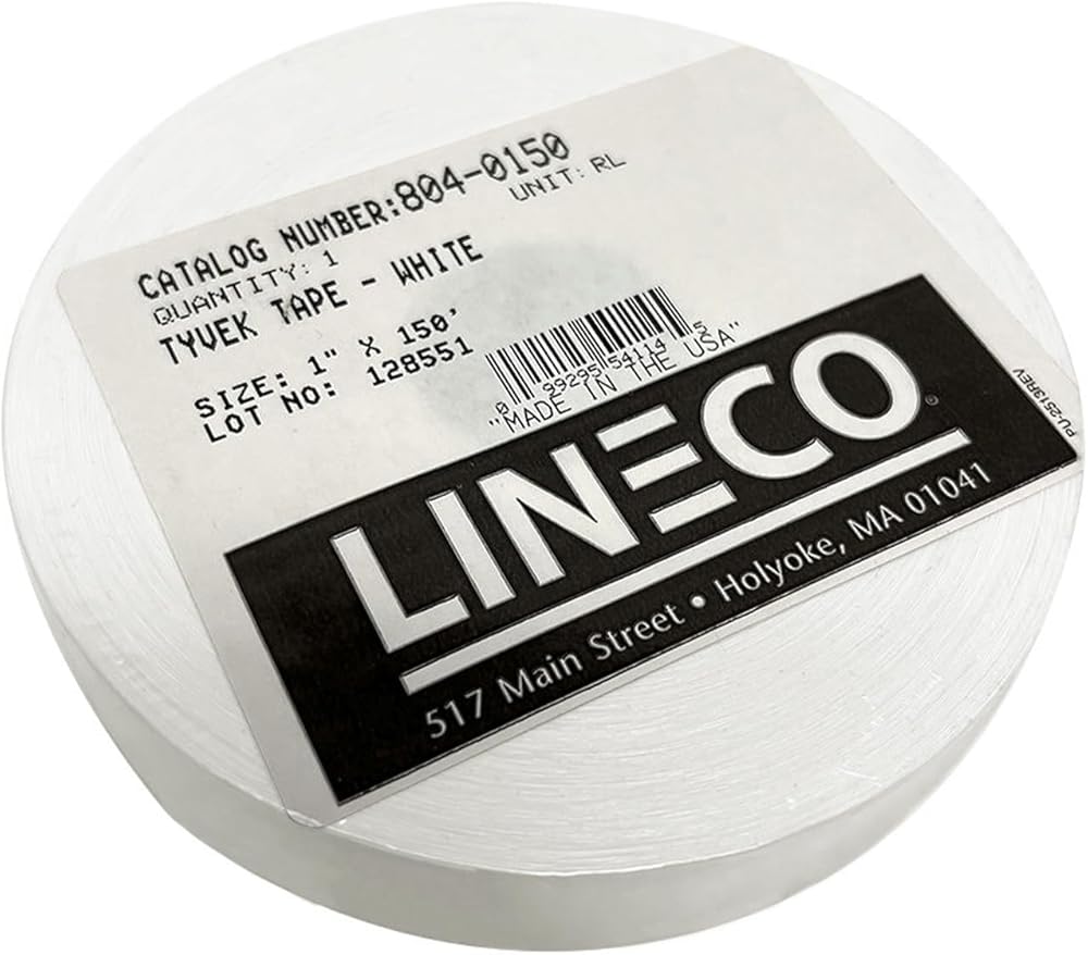 شريط تايفك من البولي إيثيلين الحساس للضغط من لينيكو، 2.5 سم × 150 قدم، أبيض، 1 لفة متوسطة LIN-804-0150