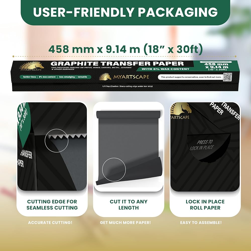TRACING PAPER ROLL - The MyArtscape Graphite Transfer Paper Roll is longer and wider with 18" x 30ft dimensions which means increased versatility and convenience covering a larger surface, much wider and longer than the other brands.
