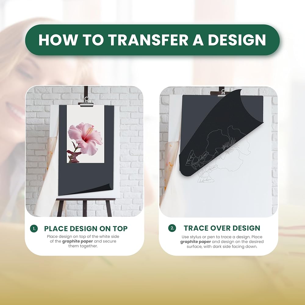 VERSATILE AND PRECISE FOR MOST SURFACES: Premium transfer paper for drawing and sketching. Easily copy, duplicate, trace and transfer your designs to canvas, paper, wood, glass, metal, toles, ceramic, clay and more.
