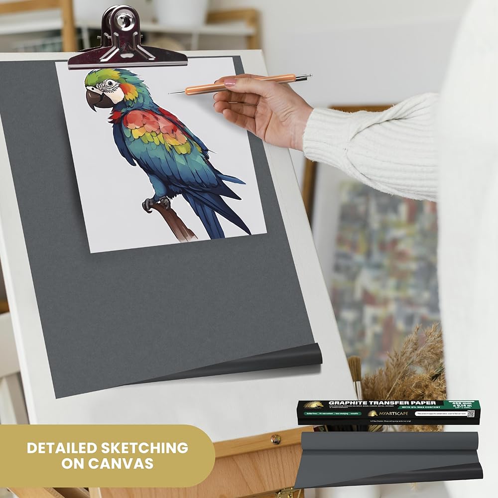 This graphite transfer paper allows for precise tracing of designs onto paper or canvas. Made with 8% wax content, it transfers smooth, dark lines without smudging or smearing. The black color provides high contrast for easy visibility, while the grey option is more subtle. Whether sketching patterns for crafts or tracing technical drawings, this graphite paper glides smoothly and traces with accuracy. At a reasonable price, it's ideal for students, hobbyists and professionals. Each sheet measures 8.5x11 inches for standard letter size use. Tracing is simplified with clear image transfer you can see - no need for taping or extra hands. Keep it on your desk for painless replication of your artwork again and again.