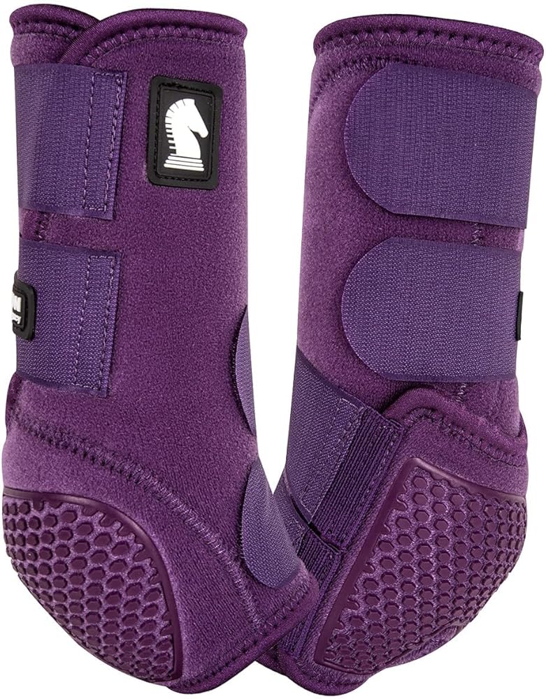 Classic Equine(R) Flexion by Legacy Horse Boots - Front Maximum Protection Meets Ultimate Flexion! Flexion technology provides individual abrasive resistant cells on the Fetlock Cradle System with impact and wear protection never before seen in the equine leg protection space. Each flexion cell can move and stretch individually, creating a flush, secure fit when wrapping the cradle around the horse leg. The same Legacy2 design provides suspensory support without inhibiting movement, reinforcing the horse's natural motion while protecting the critical structures of the leg using nature's design. Features: Made of 100% virgin neoprene that provides four-way stretch for ultimate flexibility Suspensory rib ensures proper boot alignment Perforated body allows heat to escape and the leg to breath Shock absorbing splint pad guards against crossfire and other scalping injuries Hook-and-loop closures with elastic reinforcement provide exceptional grip and durability Soft inner layer cleans easily and dries quickly Exclusive Cradle Fetlock System provides maximum support to fetlock Round edges help keep dirt and debris out Flexion technology has extended stretch, ensuring a close, comfortable fit that is UV, impact, and wear resistant Item Specifications: Style: Front Boots