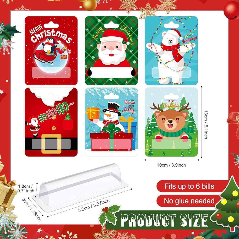 هدية مثالية وجذابة: اجعل هدايا عيد الميلاد سريعة ومريحة مع حامل أموال عيد الميلاد الخاص بنا؛ اختر من بين مجموعة متنوعة من الأساليب الإبداعية التي تلفت الانتباه وتضفي سحرًا على هداياك، مما يجعلها الهدية المثالية لأي شخص في قائمتك