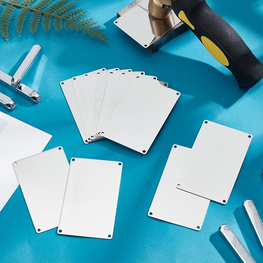 BENECREAT 12 Pcs 304 Stainless Steel Engraving Blanks, 8.55x5.35cm/3.4x2.1 Inch Rectangle Blank Tags with 4 Holes, Metal Stamping Blanks Pet Tags, Charms Making Kits for DIY Decoration Necklaces