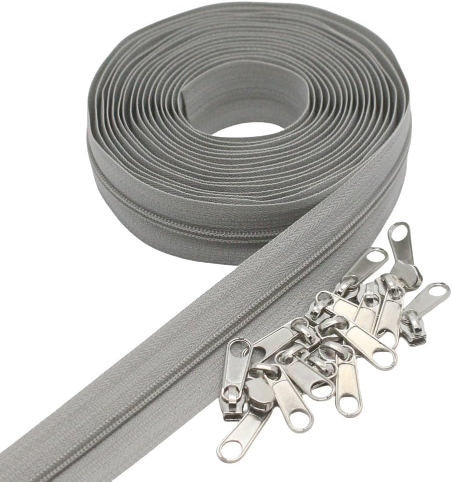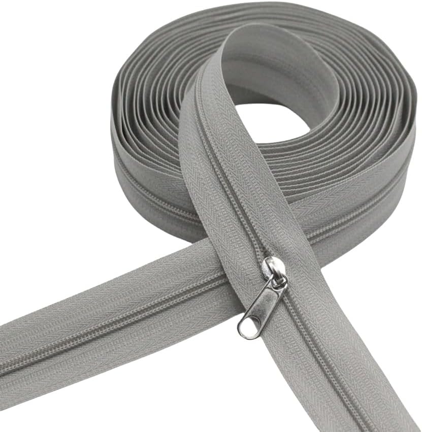 - #5 Grey Nylon Coil Zippers By The Yard Bulk for Sewing Tailor