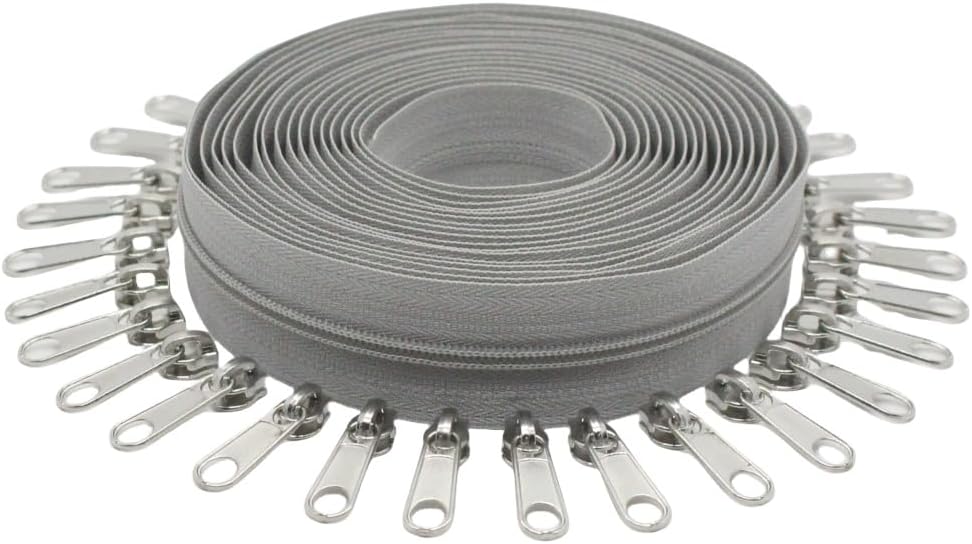 YaHoGa #5 Grey Nylon Coil Zippers by The Yard Bulk 10 Yards with 25pcs Sliders for DIY Sewing Tailor Crafts Bags (#5 Grey)
