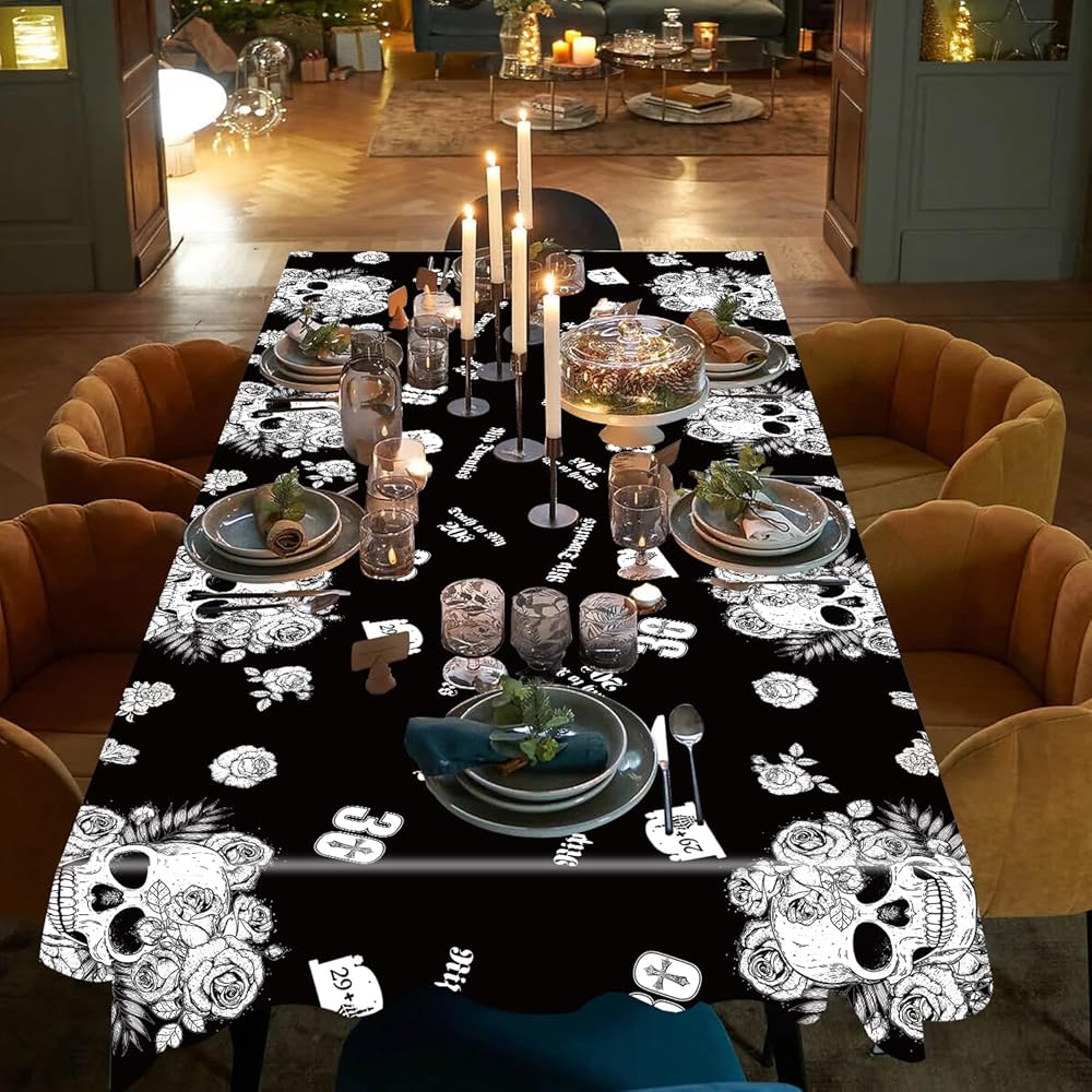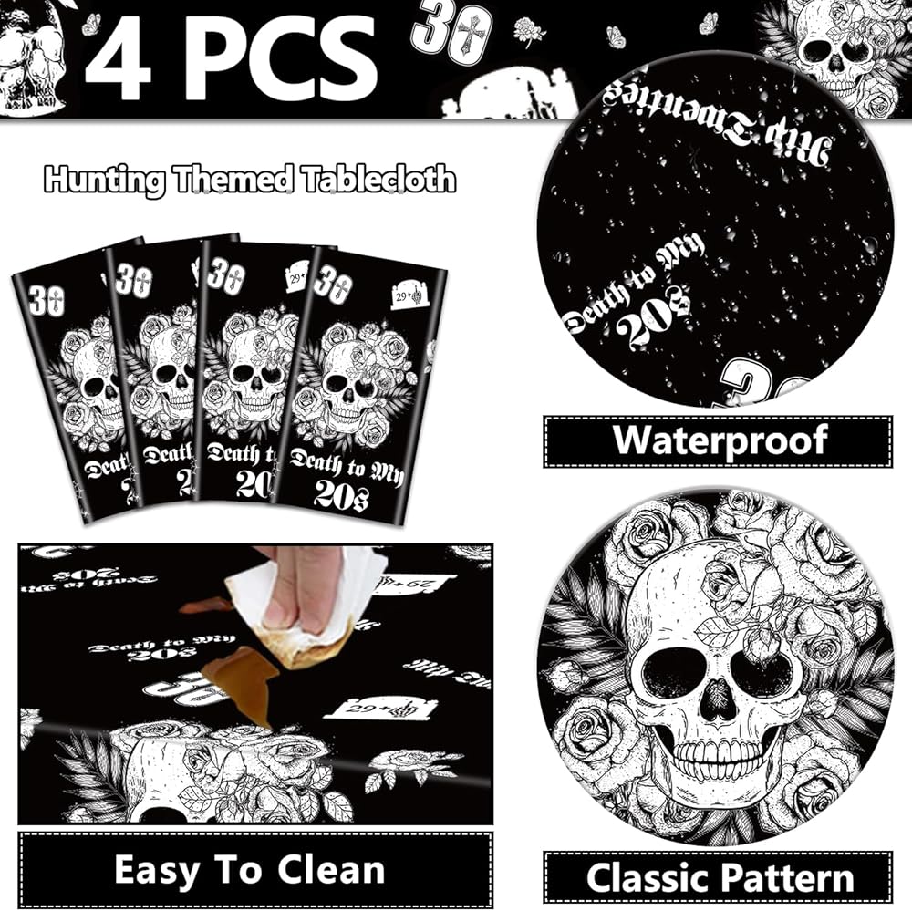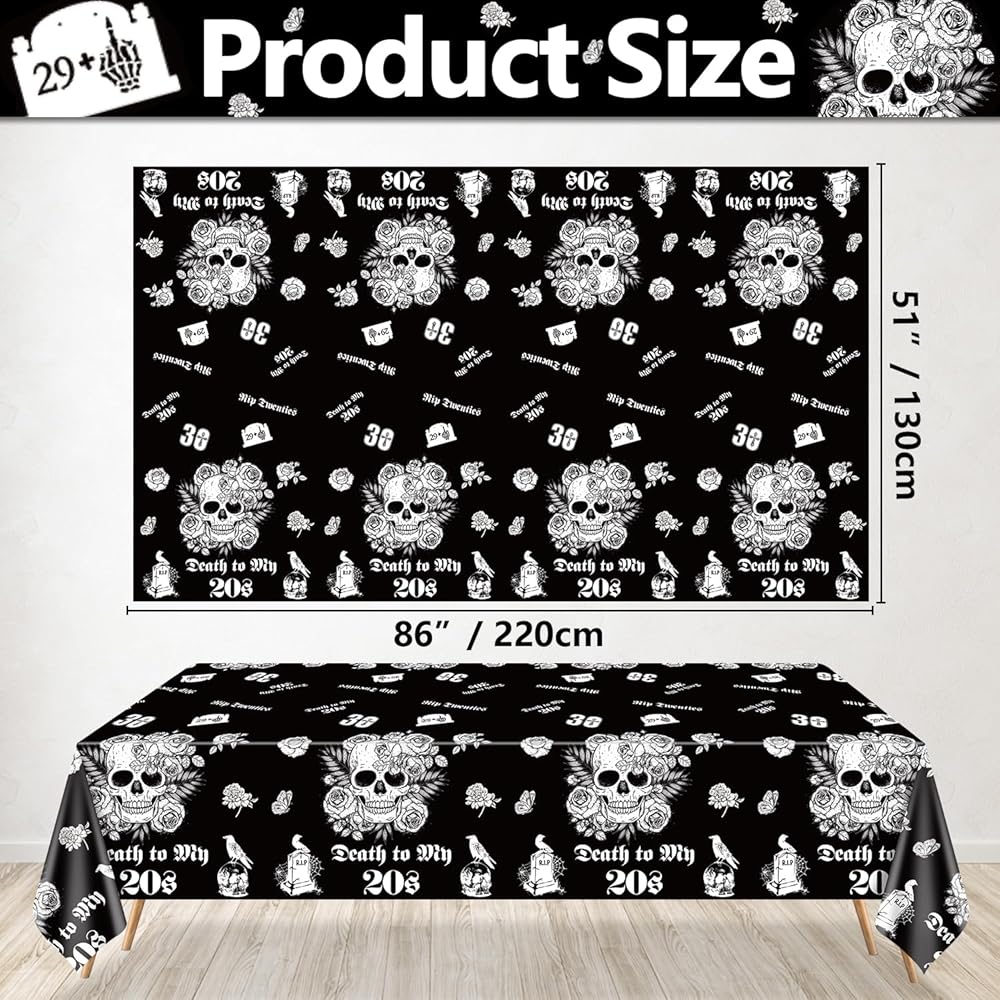 Value Package - 4 pcs death to my 20s table covers, measured 86"x51.2"(220x130cm), which is large enough for most tables, and you could use them for parties or events with more people.
