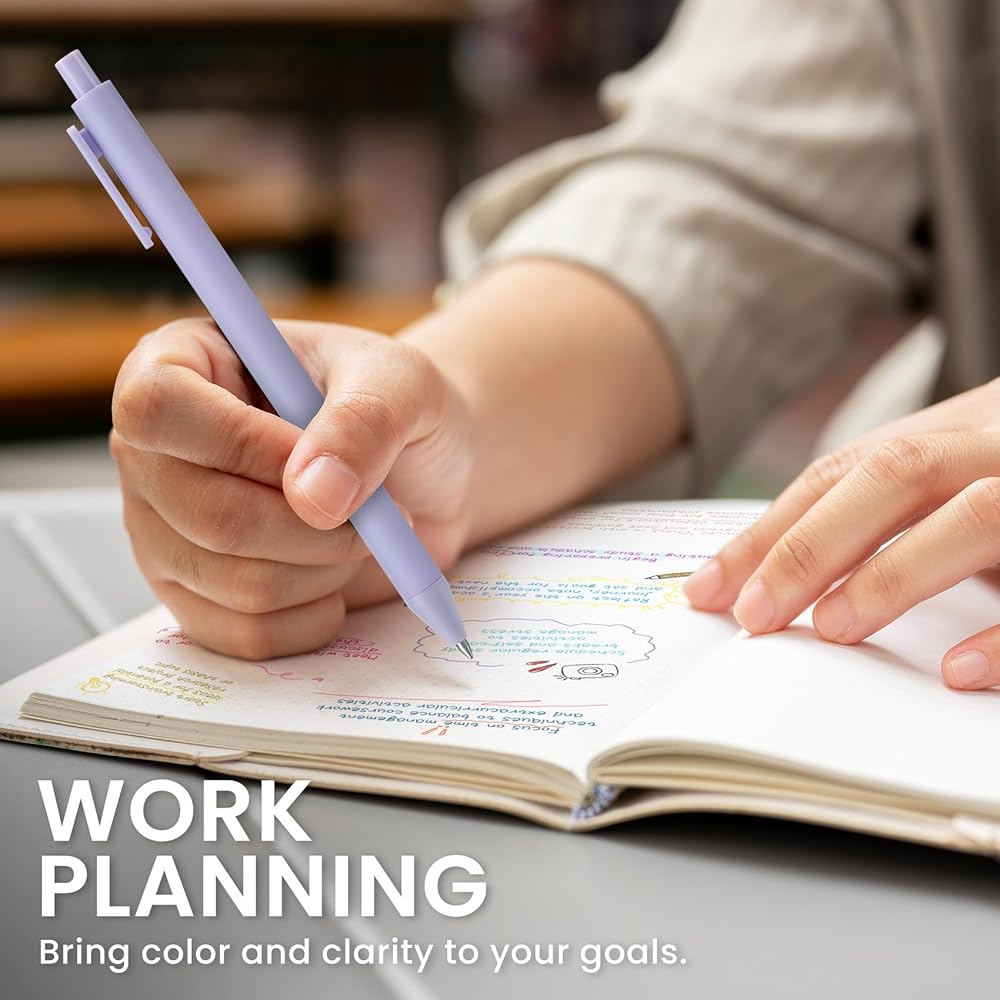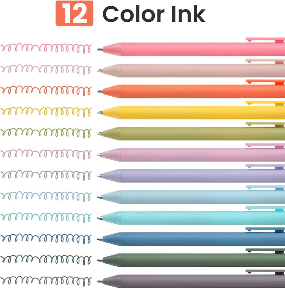 لوحة مكونة من 12 حبرًا ملونًا: اكتشف مجموعة مكونة من 12 حبرًا ملونًا نابضًا بالحياة والتي تضفي الحيوية على كل صفحة. مثالي لإضافة لمسة من الأناقة والإبداع إلى جميع ملاحظاتك ومشاريعك.