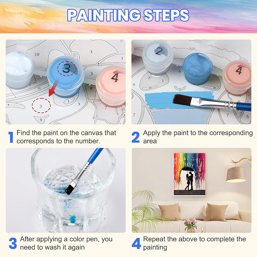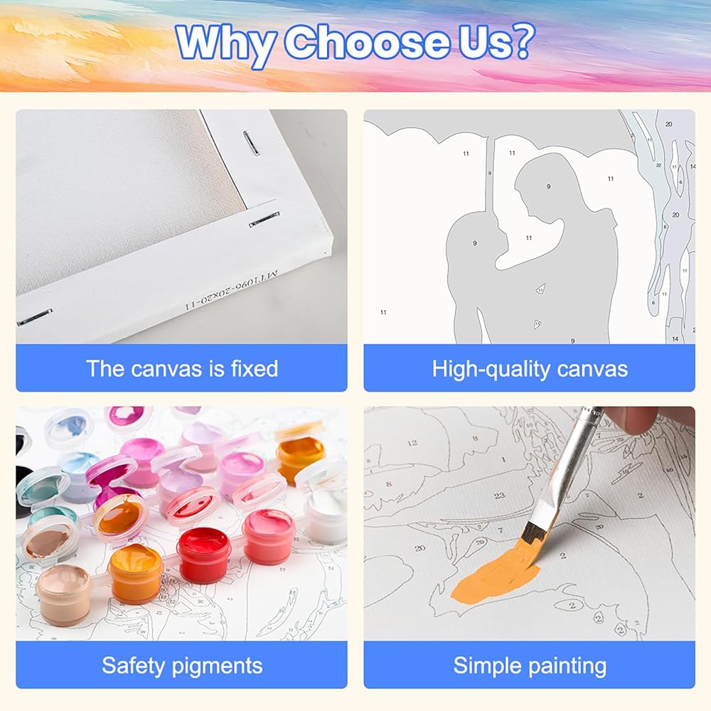 【مواد عالية الجودة】 مجموعات الطلاء حسب الأرقام للبالغين - استخدم طلاء أكريليك عالي الجودة لضمان احتفاظ أعمالنا الفنية بحيويتها ومقاومتها للبهتان بمرور الوقت. بالإضافة إلى ذلك، تم اختيار القماش الخاص بنا بعناية لسطحه المسطح والخالي من التجاعيد، مما يجعل من السهل الطلاء عليه ويضمن تجربة فنية سلسة.