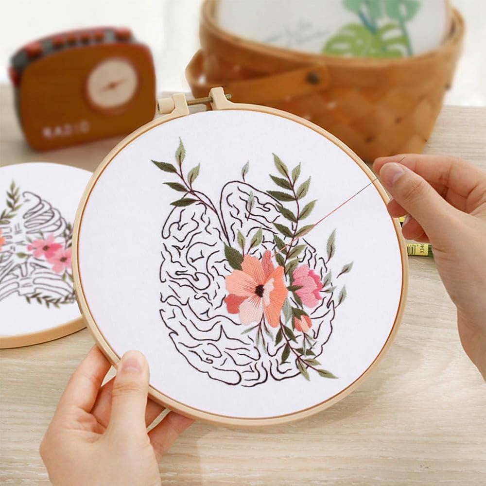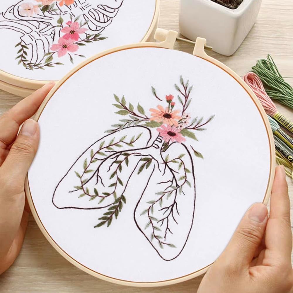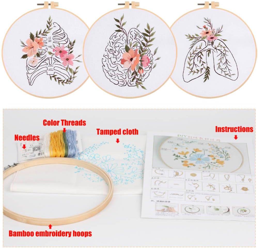 Beginners Human Anatomy Embroidery Kits Includes:2 x Bamboo embroidery hoop ( Size: 7.87 Inch/20cm ).