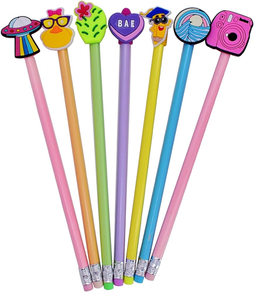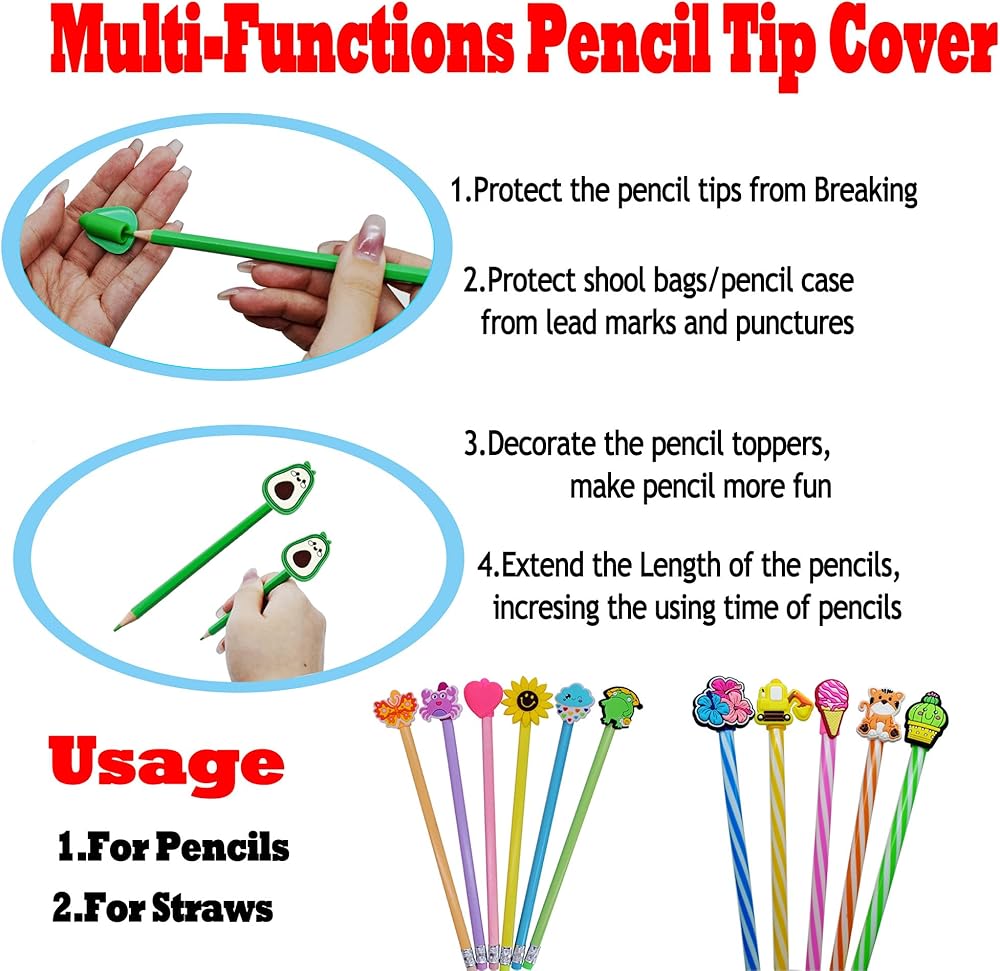 Multi-Functions: If you use they as pencil tip cap,they not only can protect the pencil tip from breaking but also protect school bags/pencil case from lead marks & punctures;if you use they as pencil topper decoration,they can make your pencils more fun!Also, they can extend the length of the pencil, increasing the using time of pencil