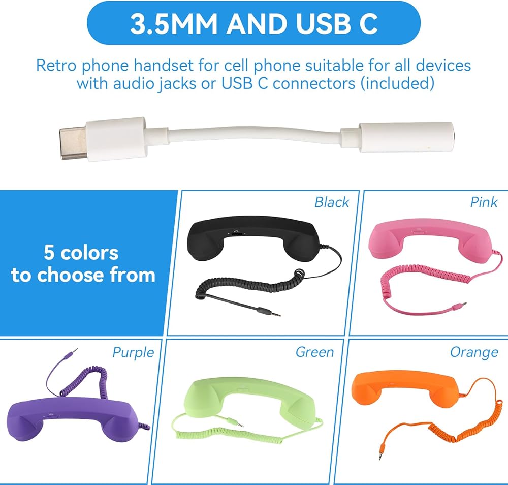 3.5 ملم وUSB C: سماعة هاتف قديمة للهاتف الخلوي مناسبة لجميع الأجهزة المزودة بمقابس صوت أو موصلات USB C (متضمنة).