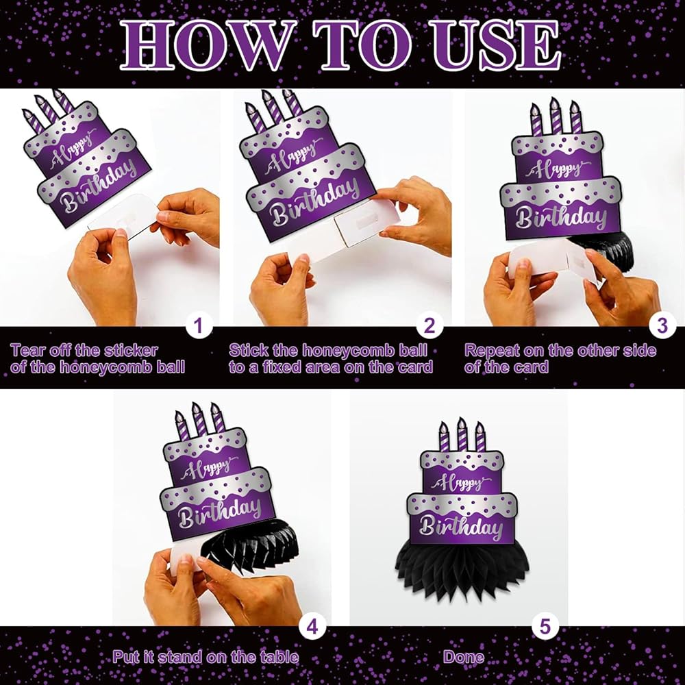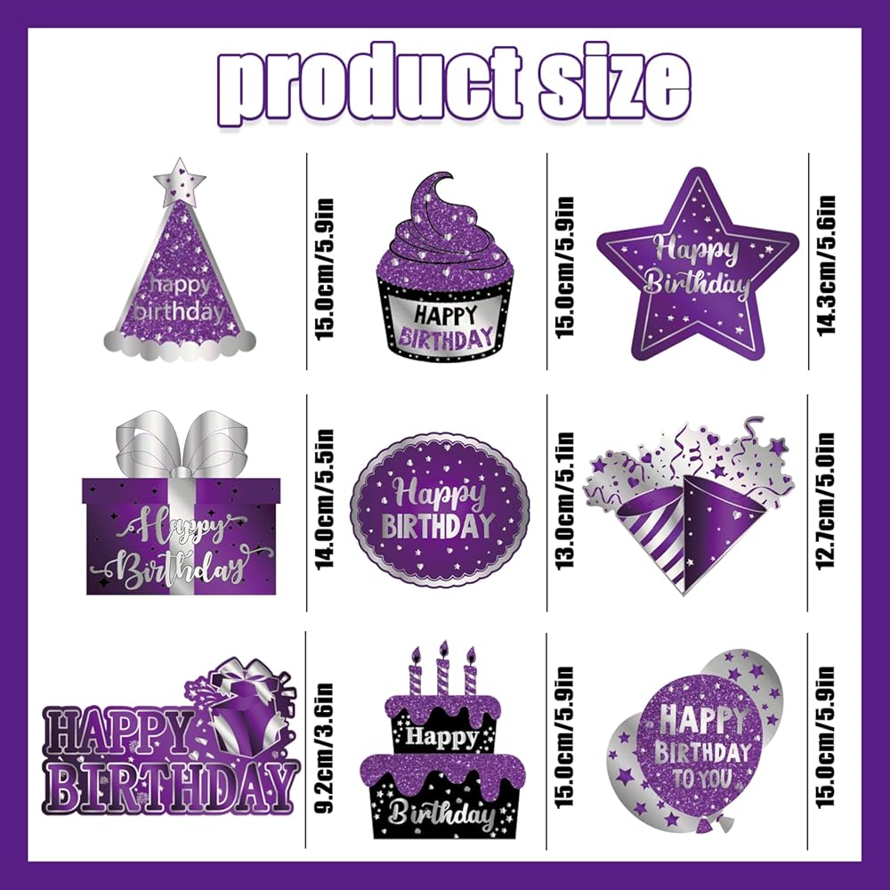 【مادة قابلة لإعادة الاستخدام】تتميز زينة الحفلات الأرجوانية بتصميم فريد ورائع. كما أنها مصنوعة من مادة بطاقات عالية الجودة، وليس من السهل الانحناء وقوية بما يكفي لتعليقها لفترة طويلة. أضف أجواء احتفالية رائعة إلى عيد ميلادك