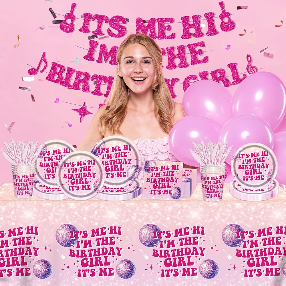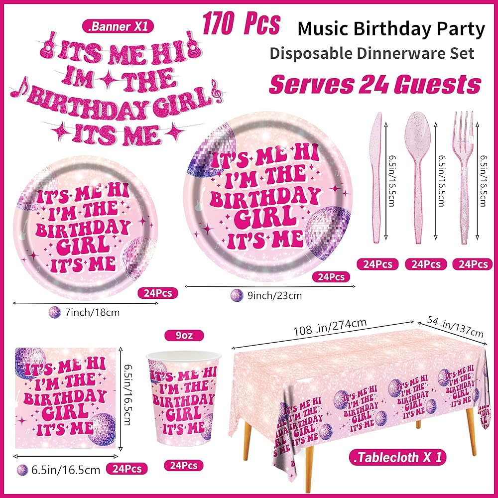 170 قطعة من أدوات مائدة إتس مي هاي إم ذا بيرثداي جيرل إتس مي، ديكورات حفلات أعياد الميلاد الموسيقية تتضمن لافتة إتس مي هاي إم ذا بيرثداي جيرل إتس مي مناديل لتزيين حفلات أعياد الميلاد