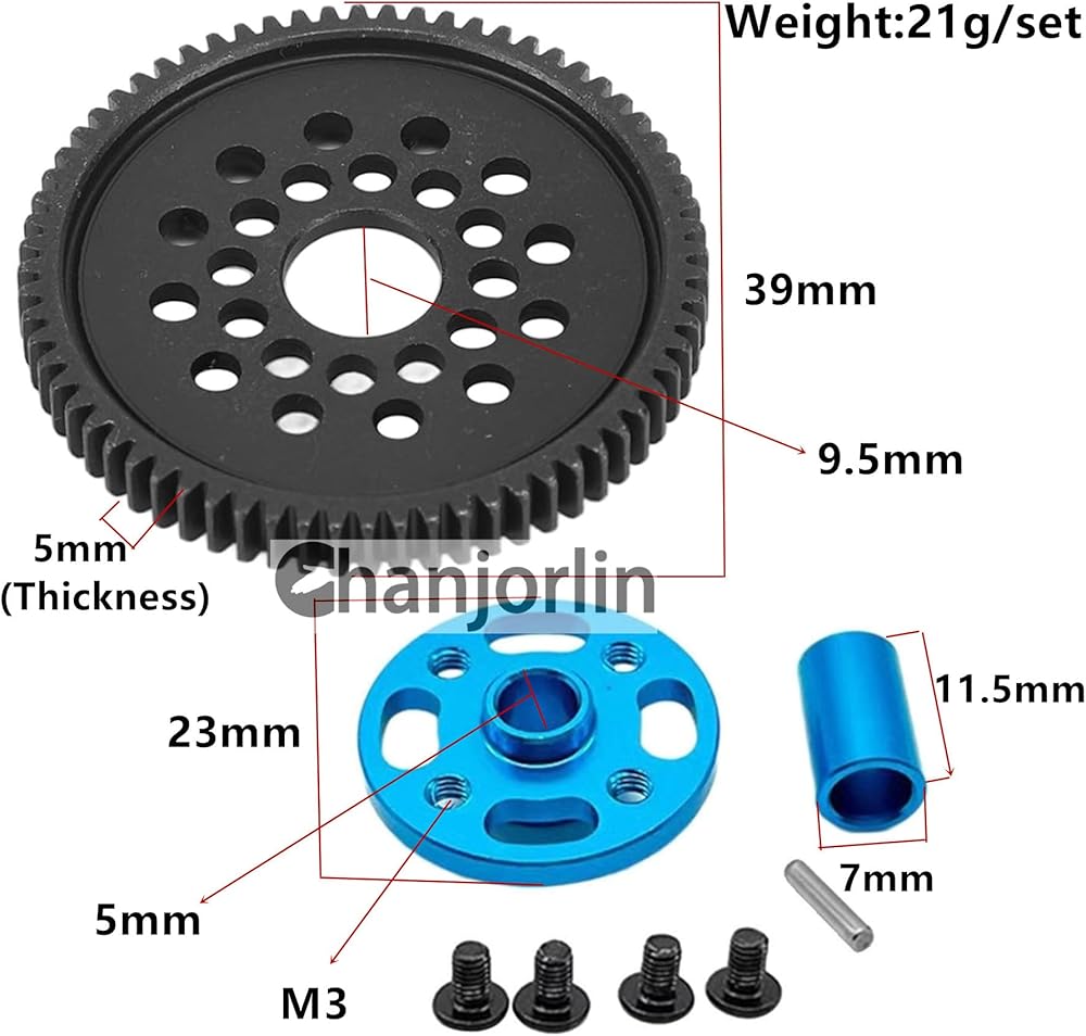🚓 The rc 68T high speed gear set upgrades parts is compatible with Tamiya TT02 Upgrade Part 1/10 RC Rally On Road Racing Car