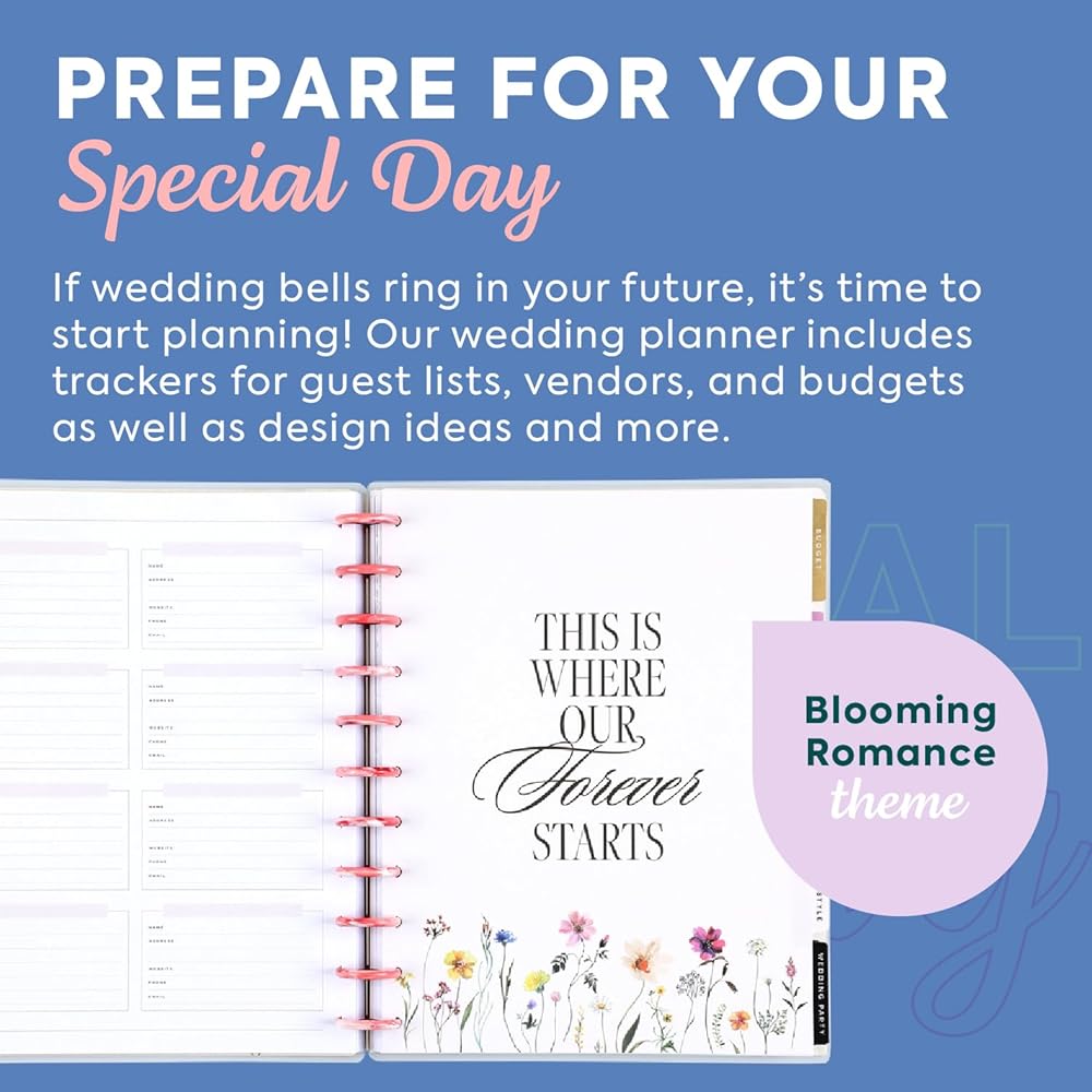 Make forever your always with the Happy Planner Wedding Planner. This undated planner and organizer for the wedding planner or bride-to-be comes undated and includes a 12-month wedding timeline so you can meticulously plan every step down the aisle. It includes trackers for guest lists, vendors, and budgets as well as design ideas and more. Get organized for your big day with this wedding-day essential!