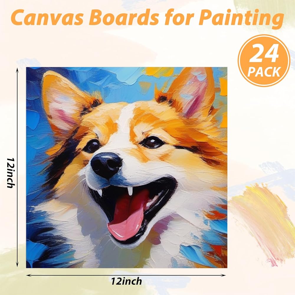 • Package Includes: Package includes 24 pack canvas boards for painting, plenty for you to create on. The canvas panels measure 12 x 12 inch and are 3mm thick, the flat canvas board can be easily framed