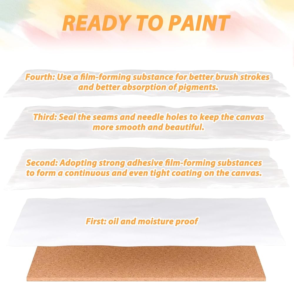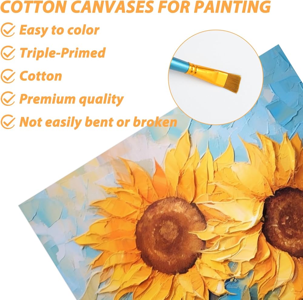• Premium Material: The surface of the blank canvas is made of high quality cotton, retaining the natural tones and flexibility of cotton yarn with high tensile strength. The middle panel is made of MDF, which is not easy to bend or curl, and will not be deformed after using a large amount of paint