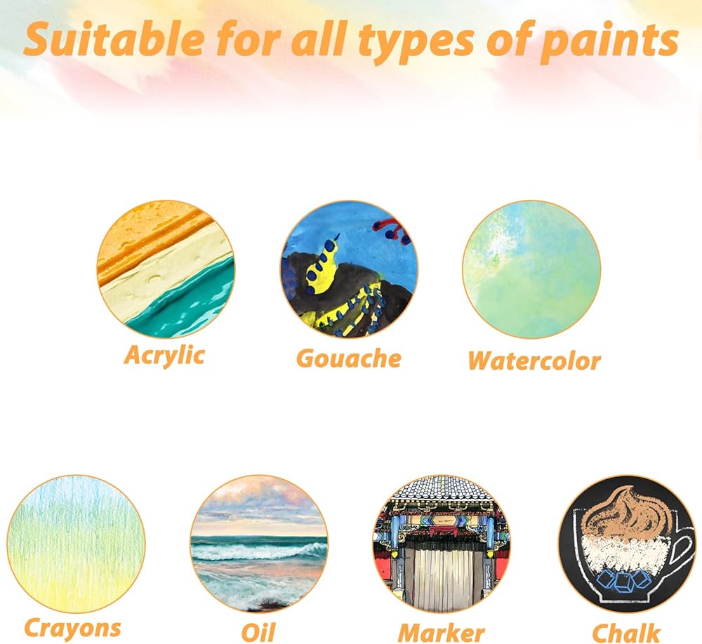 • Versatility: These canvas panels for painting are lightweight and portable, perfect for all different types of paints. Whether you want to paint in oils, acrylics, tempera or watercolor, pen and pencil or any practice technique