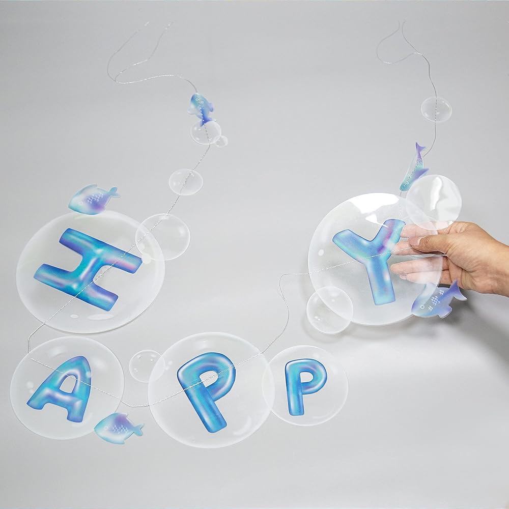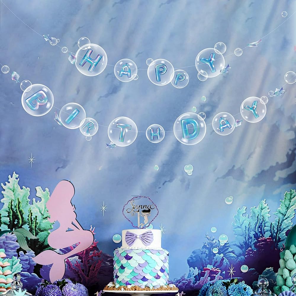 👍【تصميم فقاعات شفاف 】: تم تصميم مجموعة الطوق هذه لتقديم مباركة عيد ميلاد سعيد بشكل إبداعي مع شعور المحيط أو البحري. مطبوعة بشكل جيد على ورقة بلاستيكية شفافة، اللافتة خفيفة وشفافة وهي عبارة عن زخارف جذابة لحورية البحر والمحيط وسبونج بوب ونيمو وحفلات أعياد الميلاد تحت عنوان البحر للأطفال للفتيات والأولاد.
