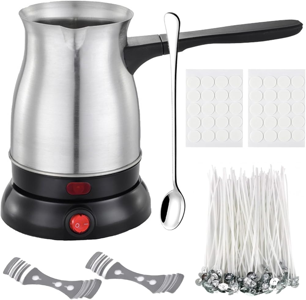 صناعة مجموعة الشموع الفاخرة: يقدم وعاء ذوبان الشمع الخاص بنا كل شيء من أجلك: 1 × جهاز إذابة الشمع الكهربائي مع وعاء 800 مل، 1 × ملعقة تحريك، 50 × فتيل شموع، 40 × ملصق فتيل، 2 × حامل فتيل شموع حديد، 1 × تعليمات