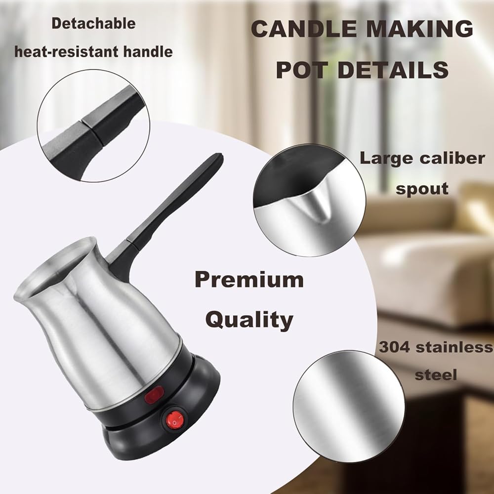 جودة عالية: وعاء صنع الشموع الخاص بنا مصنوع من الفولاذ المقاوم للصدأ 304، مع مقاومة قوية للصدأ، ومقاومة لدرجات الحرارة العالية، ويوجد تحكم مخصص في درجة حرارة الشمع الذائب، وستكون هناك حماية من درجات الحرارة العالية، وآمنة جدًا